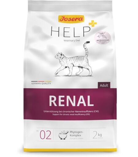 Ihre Katze leidet unter einer Nierenerkrankung? In solchen Fällen kann das passende Futter Abhilfe schaffen: Futter wie unser Josera Help Renal, das speziell auf Katzen mit Nierenleiden zugeschnitten wurde. Denn viele nierenkranke Katzen futtern oft schlecht - hier hilft die hohe Akzeptanz des medizinischen Trockenfutters. Josera Help Renal fördert die Nährstoffversorgung Tag für Tag - mit allen wichtigen Vitaminen, Mineralien und Spurenelementen, die die Katze braucht. Die protein- und phosphorreduzierte Rezeptur hilft außerdem, vor allem die Niere zu entlasten. Als Ausgleich ist jede Krokette des Diät-Alleinfuttermittels reich an B-Vitaminen, die bei einem solchen Leiden sonst vermehrt über die Niere verlorengehen würden. Die im Phytogen-Komplex enthaltene Brennnessel wird traditionell zur Durchspülungstherapie der ableitenden Harnwege eingesetzt und wird zudem wegen ihrer entzündungshemmenden Eigenschaften geschätzt. Die kranke Niere wird entlastet und so das Wohlbefinden der Katze gesteigert. Der Prozess der Erkrankung lässt sich leider aber nur verlangsamen. Zusammensetzung: Getrocknetes Griebenprotein; Geflügelfett; Reis; Mais; Rübentrockenschnitzel (natürliche Quelle von Ballaststoffen); getrocknete Kartoffel; Kartoffelprotein; hydrolysiertes tierisches Protein; Mineralstoffe; Geflügelleberhydrolysat; Lachsöl 0,50 %; Oregano; Ingwer; Rosmarin; Brennnessel 0,03 %; Mariendistel; Cranberry. Analytische Bestandteile: Protein 26,8 % Fettgehalt 20,2 % Rohfaser 2,6 % Rohasche 5,0 % Calcium 0,55 % Phosphor 0,45 % Natrium 0,35 % Magnesium 0,08 % Kalium 0,70 % Taurin 1.600 mg metabolisierbare Energie pro kg MJ 17,1 metabolisierbare Energie pro kg kcal 4.084 ...