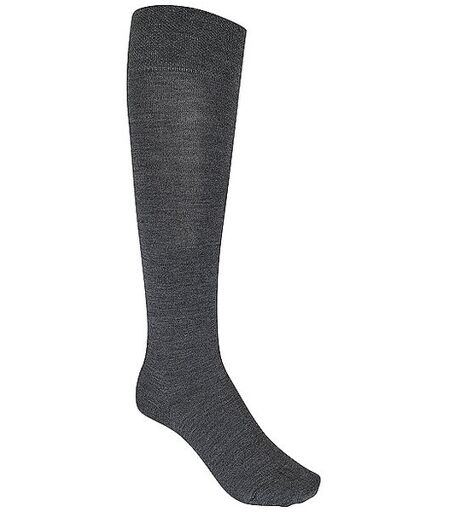 Klimaregulierende Damen Kniestrümpfe aus feinem Schurwoll-Mix Spezielle Verstärkungen in den Belastungszonen Hoher Tragekomfort Handgekettelte Zehennaht Verstärkte Spitze Verstärkte Ferse Druckfreier RELAX-Komfortbund Unifarben Farbbezeichnung: Grau-Mel. Material: 53% Baumwolle, 42% Schurwolle, 4% Polyamid, 1% Elasthan ...