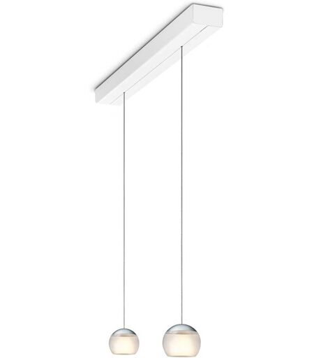 Oligo Balino LED Pendelleuchte mit unsichtbarer Höhenverstellung 2-flammig weiß Haube chrom matt / Glas satiniert