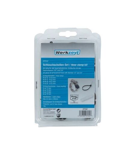 Cornat Schlauchschellenset 56tlg. Produktnummer: 0692152141 Cornat Schlauchschellen-Set 56-teilig. Für alle haushaltsüblichen Schläuche mit den Durchmessern 1/2" und 3/4", Bestehend aus: 4 Schlauchschellen: ø 10 - ø 16 mm, 4 Schlauchschellen: ø 12 - ø 22 mm, 4 Schlauchschellen: ø 16 - ø 27 mm, 2 Schlauchschellen: ø 20 - ø 32 mm, Je 2 Schlauchverbinder: ø 12 mm, ø 13 mm, ø 14 mm, ø 19 mm, 20 Kabelbinder: 2,5 mm x 120 mm, 14 Schutzkappen f. Schlauchschellen. 4 Schlauchschellen: ø 10 - ø 16 mm 4 Schlauchschellen: ø 12 - ø 22 mm 4 Schlauchschellen: ø 16 - ø 27 mm 2 Schlauchschellen: ø 20 - ø 32 mm Je 2 Schlauchverbinder: ø 12 mm, ø 13 mm, ø 14 mm, ø 19 mm 20 Kabelbinder: 2,5 mm x 120 mm 4 Schutzkappen f. Schlauchschellen Herstellerinformationen: Conmetall Meister GmbH Hafenstrasse 26 29223 Celle, Deutschland eMail: info@conmetallmeister.de Herstellernr. ZYT167 ...