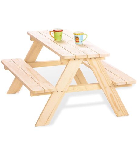 : Natürliche Kindersitzgruppe aus massivem, unbehandeltem Fichtenholz, die Platz für bis zu 4 Kinder bietet Die passende Polsterauflage finden Sie hier Perfekt für alle Aktivitäten draußen im Garten oder auf der Terrasse: zum Malen, Essen, Spielen oder einfach nur sitzend die Sonne genießen Bei der bequemen Sitzhöhe von 28 cm können sich kleine Outdoorsportler, Räuber oder Piraten bei einem Picknick erholen und sich eine kleine Auszeit gönnen 2 Bänke mit 1 Tisch Die Möbel können mit einem weichen, sauberen und sehr leicht angefeuchteten Tuch abgewischt werden Empfohlen für Kinder von 2 bis 7 Jahren Material: Fichtenholz, massiv, unbehandelt Maße: ca. B 79 x H 50 x T 90 cm Sitzhöhe: ca. 28 cm Gewicht: ca. 9 kg ...
