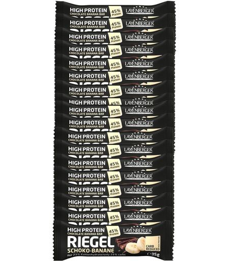 Bitte achten Sie auf eine abwechslungsreiche und ausgewogene Ernährung und eine gesunde Lebensweise. Der leckere Power-Snack für unterwegsmaximal 25% Kohlenhydrate (4,1% NetCarbs)mindestens 45% Eiweißohne Farb- und KonservierungsstoffeDieser Low Carb Riegel ist praktisch für unterwegs. Sie liefern Ihrem Körper wichtiges Eiweiß, das er für den Muskelaufbau und die Regeneration nach sportlichen Aktivitäten benötigt.Mit mindestens 45% hochwertigen Proteinen und maximal 25% Kohlenhydraten (NetCarbs 4,1% maximal) ist der Low Carb Protein-Riegel für eine eiweißreiche, kohlenhydratreduzierte Ernährung besonders geeignet. Aufgrund des hohen Eiweißgehalts sättigt der Low Carb Riegel lange.Zutatenliste: Kollagenhydrolysat, Eiweißmischung (MILCHeiweiß, SOJAeiweiß-Isolat, MOLKENeiweiß-Konzentrat, MILCHeiweiß-Hydrolysat), Diät Schokoladenkuvertüre (18,0%) (Kakaomasse,Süßungsmittel (Maltit), Kakaobutter, Emulgator (SOJAlecithin), Aroma (Vanillin)), Feuchthaltemittel Glycerin, Fructo-Oligosaccharose, Wasser, Aroma, SOJAcrispies (SOJAeiweiß, Reismhel, Salz), Bananepüree (2,0%), Pflanzenfett (Palmöl), Füllstoff mikrokristalline Cellulose, L-Canitin, Säuerungsmittel (Citronensäure, Äpfelsäure),Antioxidationsmittel DL-alpha-Tocopherol, Salz, Nelkenpulver, Farbstoff Riboflavin,Süßungsmittel Sucralose. Spuren von Gluten und Hühnereieiweiß können nicht ausgeschlossen werden.Nährwertepro 100 gpro 35 gEnergie1442 kJ / 343 kcal505 kJ / 120 kcalFett9,1 g3,2 g-davon ges. Fettsäuren5,3 g1,8 gKohlenhydrate24,5 g8,6 g-davon Zucker1,4 g0,5 g-davon mehrwertige Alkohole20,6 g7,2 gBallaststoffe6,9 g2,4 gEiweiß45,5 g15,8 gSalz0,438 g0,153 gL-Carnitin850 mg298 mg Verzehrempfehlung: Nach Bedarf verzehren. Hinweis: Die angegebene empfohlene Tagesmenge darf nicht überschritten werden. Aufbewahrung:Kühl (6-25 °C) und lichtgeschützt lagern. Außerhalb der Reichweite von kleinen Kindern aufbewahren. Nettofüllmenge: 18 x 35 g Hersteller: LAYENBERGER Nutrition Group GmbHAm Tränkwald 1067688 Rodenbach ...