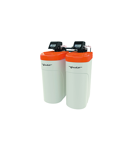 Judo Judomat Parallel-Enthärtungsanlage 8390067schützt mit weichem Wasser vor Kalkablagerungen und erhöht den KomfortEinsatzgebiet vorwiegend in der Sanitärtechnik (Teilenthärtung mit kurzfristigen Entnahmespitzen)für Trinkwasser bis 30 °CBetriebsdruck 3-6 barmengengesteuertbestehend aus zwei Ionenaustauscherharzbehälter aus glasfaserverstärktem Polyester mit Kunststoffdüsenzwei Zentralsteuerventile für automatische mengenabhängig gesteuerte RegenerationTurbinenwasserzähler zur Ermittlung des RegenerationszeitpunktesBehälterfüllungen aus Ionenaustauscherharz in Lebensmittelqualitätinterner verbindender Verrohrungzwei Salzlöse- und Vorratsbehälter mit Deckel aus schlagfestem Kunststoff (JM 2-3 W-P als Kabinettbehälter)ZwischenbodenLuftsperre und SaugleitungSteckernetzgerät 230 V/50 Hz ...