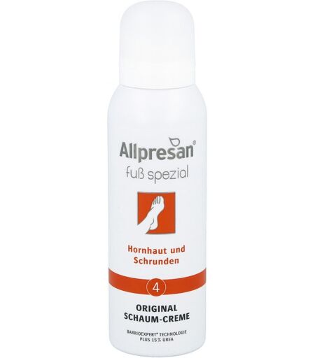 Anwendungsgebiet von Allpresan Fuss spezial Nummer 4 Hornhaut und SchrundenAllpresan Fuss spezial Nummer 4 Hornhaut und Schrunden ist eine Lipid-Salbe (Fettsalbe), die gezielt die Hornhaut und Schrunden an Ihren Füßen bekämpft und zusätzlich Sie vor weiteren Druckstellen an den Füßen bewahrt.Wirkungsweise von Allpresan Fuss spezial Nummer 4 Hornhaut und SchrundenAllpresan Fuss spezial Nummer 4 Hornhaut und Schrunden enthält in seiner Lipid-Salbe 15% Urea, Nachtkerzenöl und Vitamin E.