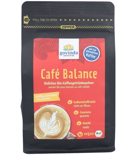 Nahrungsergänzungsmittel sind kein Ersatz für eine ausgewogene und abwechslungsreiche Ernährung und eine gesunde Lebensweise. Cafè Balance lösliches Bio Kaffeegetränkepulver Der Cafe Balance, Bio besitzt eine köstliche Arabica Note und eine perfekte Löslichkeit. Guaranasamenpulver und Reishi Pilzpulver geben dem löslichen Kaffeepulver das gewisse Etwas. Die kräftige Geschmacksnote lässt deine Geschmacksknospen aufjubeln. kräftig, aromatisch Ballaststoffreich Guarana Reishi vegan Zutaten:75% Gummi Arabicum [1], 20% Arabica Kaffee [1], 2,5% Kaffee Extrakt [1], 1% Guarana Samenpulver [1], 0,5% Reishi (Ganoderma lucidum) Pulver [1], Gewürze [1]1 aus kontrolliert biologischem Anbau Nährwertangaben: Nährwert pro 100 g Pro 1 Portion (100 ml Wasser und 7 g Cafe Balance (ca. 2 TL)) Energiegehalt / Brennwert 959 / 229 kJ / kcal 67 / 16 kJ / kcal Fett 0,5 g 0 g davon gesättigte Fettsäuren 0,1 g 0 g Kohlenhydrate 12 g 0,9 g davon Zucker 1,4 g 0,1 g Eiweiß 6,5 g 0,5 g Ballaststoffe 72 g 5,1 g Salz 0,18 g 0,01 g Der Salzgehalt ist ausschließlich auf natürlich vorkommendes Natrium zurückzuführen.1 Portion = 100 ml Wasser und 7 g Cafè Balance (ca. 2 TL).Verzehrempfehlung: Für eine Tasse Café Balance ca. 2 TL mit etwa 100 ml heißem Wasser aufgießen & nach Belieben mit Milch / pflanzlicher Milchalternative genießen. Aufbewahrungs- & Verwendungshinweis: Erhöhter Koffeingehalt. Für Kinder und schwangere oder stillende Frauen nicht empfohlen. Eine Portion/Tasse (2 TL + 100 ml Wasser) Café Balance enthält ca. 56 mg Koffein (ca. 56 mg Koffein/100 ml trinkfertiges Erzeugnis). Kühl, trocken und lichtgeschützt lagern. Bitte beachten Sie ggf. weitere Lagerhinweise auf der Verpackung. Nettofüllmenge: 400 g Herstellerdaten: Govinda Natur GmbHHauptverwaltung:Waldhoferstraße 10269123 HeidelbergDeutschland ...