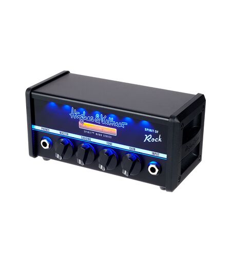Hughes & Kettner Spirit of Rock, Transistor Verstärker Topteil für E-Gitarre; Ideal für Rock- und Leadsounds, Spirit-Tone-Generator-Technologie, Vollständig analoge Klangerzeugung, Nano Head mit bis zu 50 Watt an 4 Ohm, Sagging-Control für Endstufensättigung unabhängig der Lautstärke, Kopfhörer-Ausgang mit RedBox-Emulation des TubeMeister18, Ungefilterter Line-Out als ideale Basis für die Nutzung von Software-Cab-Sims, Transportfreundliches Miniaturformat; Gewicht: ca. 1.1 kg inkl. Netzteil (725 Gramm ohne Netzteil); Kanäle: 1; Regler: Master, Sagging, Tone, Gain; Lautsprecher Ausgänge: min. 4 Ohm (2 x 6,3 mm Klinke); Anschlüsse: Input (6,3 mm Klinke), Aux In (3,5 mm Stereoklinke), Phones (6,3 mm Stereoklinke); Maße (B x T x H): 190 x 90 x 90 mm; ...