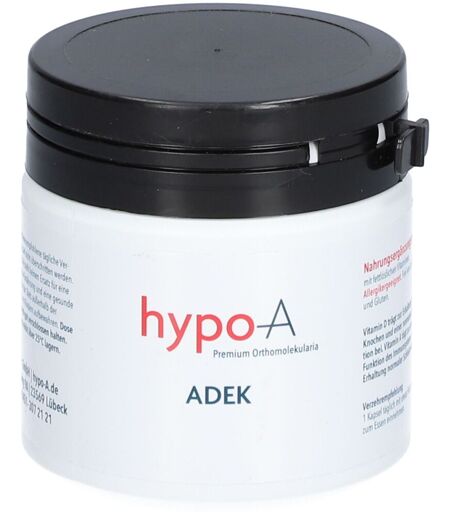 Nahrungsergänzungsmittel sind kein Ersatz für eine ausgewogene, abwechslungsreiche Ernährung und eine gesunde Lebensweise.hypo-A ADEK-KapselnZutaten:Bioleinöl (kbA) 57,7 %, Gelatine, Glycerin, Vitamin E 5,6 %, Olivenöl, Wasser ger., Sonnenblumenöl, ß-Carotin 2,1 %, Vitamin D3 Konzentrat 0,028 %, Vitamin K1 0,009 % Nährwerte:Durchschnittlicher Gehaltpro Kapsel% des empf. Tagesbedarfs*pro 100 gEnergie26,4 kJ (6,3 kcal) 2838,7 kJ (677,4 kcal)Fett0,6 g 64,5 gdavon gesättigte Fettsäuren0,06 g 6,5 gdavon einfach ungesättigte Fettsäuren0,12 g 12,9 gdavon mehrfach ungesättigte Fettsäuren0,42 g 45,2 gKohlenhydrate0,1 g 10,8 gdavon Zucker0 g 0 gBallaststoffe0 g 0 gEiweiß0,2 g 21,5 gSalz0 g 0 gVitamin E45 mg -TE3754839 mgVitamin A3000 μgRE375322581 μgVitamin K180 μg1078602 μgVitamin D36 μg120645 μg* Referenzmenge nach EU-Richtlinie VO 1169/2011 EUVerzehrsempfehlung:1 Kapsel täglich mit etwas Flüssigkeit einnehmen.Hinweis:Die angegebene empfohlene tägliche Verzehrmenge darf nicht überschritten werden.Aufbewahrung:Stets Außerhalb der Reichweite von kleinen Kindern aufbewahren.Nettofüllmenge:100 Kapseln à 930,0 mg = 93,0 g Herstellerdaten: hypo-AKücknitzer Hauptstr. 5323569 Lübeck ...