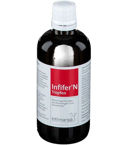 Homöopathisches Arzneimittel, daher ohne Angabe einer therapeutischen Indikation. Zusammensetzung:100,0 ml enthalten:Arzneilich wirksame Bestandteile: Ferrum phosphoricum Dil. D810,0 mlAgaricus (HAB 34) Dil. D12 (HAB, Vorschrift 3a)7,5 mlAluminium oxydatum Dil. D8 7,5 mlArnica montana Dil. D12 7,5 mlArsenicum album Dil. D12 7,5 mlArtemisia cina Dil. D4 7,5 mlCalcium carbonicum Hahnemanni Dil. D8 7,5 mlCuprum metallicum Dil. D8 7,5 mlIris versicolor Dil. D4 7,5 mlKalium carbonicum Dil. D4 7,5 mlPulsatilla pratensis Dil. D4 7,5 mlStibium sulfuratum nigrum Dil. D87,5 mlStrychnos nux-vomica Dil. D4 7,5 ml 1 ml entspricht 25 Tropfen Dosierungsanleitung, Art und Dauer der Anwendung: Soweit nicht anders verordnet, 3-mal täglich 10 Tropfen, in akuten Fällen alle 2 Stunden 10 Tropfen einnehmen. Auch homöopathische Arzneimittel sollten nicht über längere Zeit ohne ärztlichen Rat eingenommen werden. ...