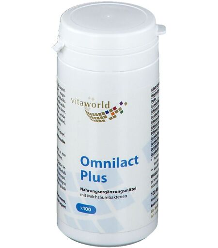 Nahrungsergänzungsmittel sind kein Ersatz für eine ausgewogene, abwechslungsreiche Ernährung und eine gesunde Lebensweise.Nahrungsergänzungsmittel mit MilchsäurebakterienZutaten:Oligofruktose, Inulin (Zichorie), Überzugsmittel: Hydroxypropylmethylcellulose (DRcaps®, magensaftresistent), Lebende Bakterienkulturen (Lactobacillus rhamnosus, Bifidobacterium bifidum, Lactobacillus acidophilus, Bifidobacterium longum, Bifidobacterium breve, Bifidobacterium lactis, Lactobacillus plantarum, Lactobacillus casei, Lactobacillus gasseri, Lactobacillus salivarius), Trennmittel: Magnesiumsalze von Speisefettsäuren. DRcaps® ist ein eingetragenes Warenzeichen von Capsugel.Glutenfrei, lactosefrei, ohne künstliche Aromen, ohne Gentechnik, nicht bestrahlt, ohne Hefe, für Vegetarier und Veganer geeignetNährwerte:Nährstoffepro Kapsel% NRV*Oligofruktose200 mg**Inulin100 mg**Lactobacillus rhammosus1 x 10 cfu**Bifidobacterium bifidum8 x 10 cfu**Lactobacillus acidophilus7 x 10 cfu**Bifidobacterium longum7 x 10 cfu**Bifidobacterium breve7 x 10 cfu**Bifidobacterium lactis7 x 10 cfu**Lactobacillus pantarum7 x 10 cfu**Lactobacillus casi7 x 10 cfu**Lactobacillus qasseri1,4 x 10 cfu**Lactobacillus salivarius1,5 x 10 cfu*** Prozentualer Anteil der Nährstoffbezugswerte nach Verordnung (EU) NR. 1169/2011 pro Tagesdosis.** Keine Empfehlung vorhandenVerzehrempfehlung:Täglich 1 Kapsel zu einer Hauptmahlzeit mit ausreichend Flüssigkeit verzehren.Hinweis:Die angegebene empfohlene tägliche Verzehrmenge darf nicht überschritten werden.Lagerung:Außerhalb der Reichweite von kleinen Kindern lagern.Nettofüllmenge:100 Kapseln = 45,2 gHersteller:Vita-World GmbHKurt-Schumacher-Str. 4965232 Taunusstein ...