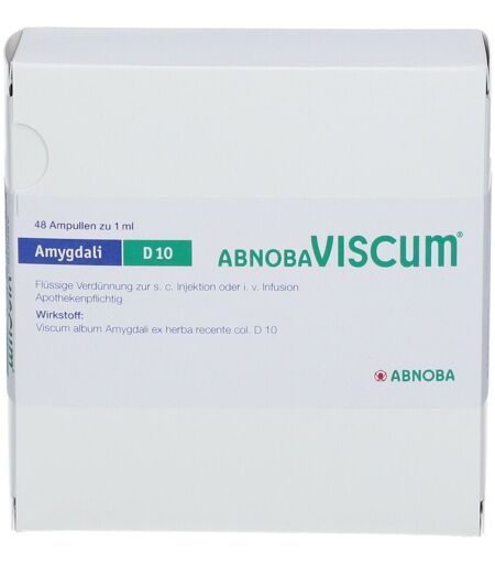 Wirkstoff:Jede Ampulle enthält 1 ml Viscum album Amygdali ex herba recente col. D10.Was ist abnoba VISCUM Und Wofür Wird es angewendet?abnobaVISCUM ist ein anthroposophisches Arzneimittel zur erweiterten Behandlung bei Geschwulstkrankheiten.Anwendungsgebiete:Gemäß der anthroposophischen Menschen- und Naturerkenntnis wird abnoba-VISCUM angewendet, um bei Erwachsenen die Form- und Integrationskräfte zur Auflösung und Wiedereingliederung verselbständigter Wachstumsprozesse anzuregen, z.B.bei bösartigen Geschwulstkrankheiten, auch mit begleitenden Störungen der blutbildenden Organebei gutartigen Geschwulstkrankheitenzur Vorbeugung gegen Rückfälle (Rezidivprophylaxe) nach Geschwulstoperationenbei Vorstufen bestimmter Krebserkrankungen (definierte Präkanzerosen). Wie ist abnobaViSCUM anzuwenden?Art der Anwendung:Die subkutane Injektion sollte nach Möglichkeit in Tumor - bzw. Metastasennähe, ansonsten an stets wechselnden Körperstellen (unterschiedliche Stellen im Bauchbereich, ggf. Oberschenkel oder Oberarm) erfolgen.Nicht in entzündete Hautbereiche oder Bestrahlungsfelder injizieren. Es ist auf streng subkutane Injektionstechnik zu achten.Vorsichtshalber wird empfohlen, abnobaVISCUM nicht mit anderen Arzneimitteln in einer Spritze aufzuziehen.Nach Säuberung der Einstichstelle (z.B. durch Abreiben mit 70%igem Alkohol) eine Hautfalte bilden und die Injektionsnadel schräg einstechen. Den Spritzenstempel leicht zurückziehen. Sollte Blut erscheinen, wurde ein Blutgefäß getroffen.Die Injektion in diesem Fall an einer anderen Stelle wiederholen. Wenn kein Blut erscheint, langsam injizieren, anschließend die Nadel herausziehen und auf die Einstichstelle kurz mit einem Tupfer drücken.Es wird in jedem Fall empfohlen, die Injektionstechnik durch eine darin erfahrene Person zu erlernen.Ampullen sind unmittelbar nach dem Öffnen zu injizieren. Angebrochene Ampullen dürfen nicht mehr für eine spätere Injektion verwendet werden.Nur die Potenzstufen D 10, D 20 und D 30:Für die Potenzstufen D 10, D 20 und D 30 kann in besonderen Fällen die erforderliche Dosis einer Infusionslösung zugemischt (physiologische Kochsalzlösung oder 5%-ige Glukoselösung) und langsam intravenös infundiert werden. Die Infusionsdauer sollte für 250 ml mindestens 90 min. dauern.Dosierung und Häufigkeit der AnwendungRichten sich nach der jeweiligen körperlichen Verfassung und werden individuell von Ihrem Arzt festgelegt.Dosierung und Häufigkeit der Anwendung:Einleitungsphase:Soweit nicht anders angegeben, erfolgt die Dosierung stets mit 1 ml der Injektionslösung der angegebenen Stärke bzw. Potenzstufe. Sie sollten die Behandlung mit der Stärke 0,02 mg dreimal wöchentlich beginnen (für die Stärken 0,02 mg, 0,2 mg, 2 mg, 20 mg und Potenzstufe D 6) und dann solange vorsichtig mit den nächst höheren Dosen stufenweise weiterführen, bis Sie die optimale Dosis erreicht haben.Die Dosierung erfolgt grundsätzlich individuell nach Anweisung des Arztes und richtet sich nach Ihrer Reaktionslage.Die... ...