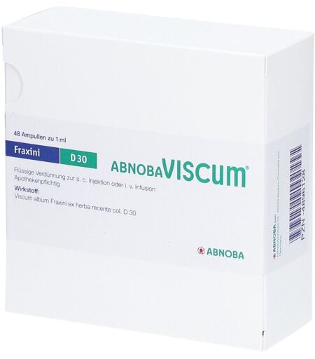 Wirkstoff:Jede Ampulle enthält 1 ml Viscum album Fraxini ex herba recente col. D30.Was ist abnoba VISCUM Und Wofür Wird es angewendet?abnobaVISCUM ist ein anthroposophisches Arzneimittel zur erweiterten Behandlung bei Geschwulstkrankheiten.Anwendungsgebiete:Gemäß der anthroposophischen Menschen- und Naturerkenntnis wird abnoba-VISCUM angewendet, um bei Erwachsenen die Form- und Integrationskräfte zur Auflösung und Wiedereingliederung verselbständigter Wachstumsprozesse anzuregen, z.B.bei bösartigen Geschwulstkrankheiten, auch mit begleitenden Störungen der blutbildenden Organebei gutartigen Geschwulstkrankheitenzur Vorbeugung gegen Rückfälle (Rezidivprophylaxe) nach Geschwulstoperationenbei Vorstufen bestimmter Krebserkrankungen (definierte Präkanzerosen). Wie ist abnobaViSCUM anzuwenden?Art der Anwendung:Die subkutane Injektion sollte nach Möglichkeit in Tumor - bzw. Metastasennähe, ansonsten an stets wechselnden Körperstellen (unterschiedliche Stellen im Bauchbereich, ggf. Oberschenkel oder Oberarm) erfolgen.Nicht in entzündete Hautbereiche oder Bestrahlungsfelder injizieren. Es ist auf streng subkutane Injektionstechnik zu achten.Vorsichtshalber wird empfohlen, abnobaVISCUM nicht mit anderen Arzneimitteln in einer Spritze aufzuziehen.Nach Säuberung der Einstichstelle (z.B. durch Abreiben mit 70%igem Alkohol) eine Hautfalte bilden und die Injektionsnadel schräg einstechen. Den Spritzenstempel leicht zurückziehen. Sollte Blut erscheinen, wurde ein Blutgefäß getroffen.Die Injektion in diesem Fall an einer anderen Stelle wiederholen. Wenn kein Blut erscheint, langsam injizieren, anschließend die Nadel herausziehen und auf die Einstichstelle kurz mit einem Tupfer drücken.Es wird in jedem Fall empfohlen, die Injektionstechnik durch eine darin erfahrene Person zu erlernen.Ampullen sind unmittelbar nach dem Öffnen zu injizieren. Angebrochene Ampullen dürfen nicht mehr für eine spätere Injektion verwendet werden.Nur die Potenzstufen D 10, D 20 und D 30:Für die Potenzstufen D 10, D 20 und D 30 kann in besonderen Fällen die erforderliche Dosis einer Infusionslösung zugemischt (physiologische Kochsalzlösung oder 5%-ige Glukoselösung) und langsam intravenös infundiert werden. Die Infusionsdauer sollte für 250 ml mindestens 90 min. dauern.Dosierung und Häufigkeit der AnwendungRichten sich nach der jeweiligen körperlichen Verfassung und werden individuell von Ihrem Arzt festgelegt.Dosierung und Häufigkeit der Anwendung:Einleitungsphase:Soweit nicht anders angegeben, erfolgt die Dosierung stets mit 1 ml der Injektionslösung der angegebenen Stärke bzw. Potenzstufe. Sie sollten die Behandlung mit der Stärke 0,02 mg dreimal wöchentlich beginnen (für die Stärken 0,02 mg, 0,2 mg, 2 mg, 20 mg und Potenzstufe D 6) und dann solange vorsichtig mit den nächst höheren Dosen stufenweise weiterführen, bis Sie die optimale Dosis erreicht haben.Die Dosierung erfolgt grundsätzlich individuell nach Anweisung des Arztes und richtet sich nach Ihrer Reaktionslage.Die... ...