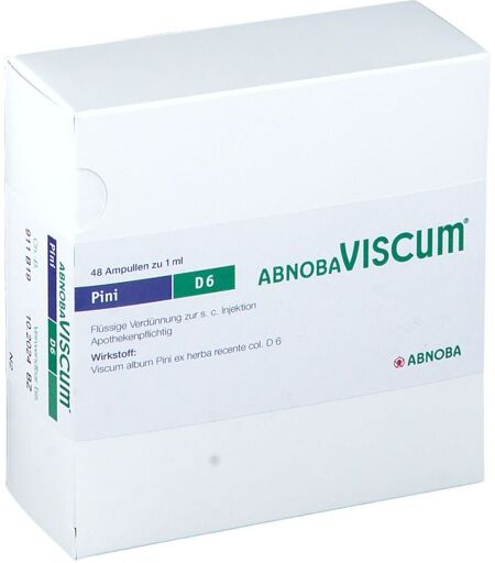 Wirkstoff:Jede Ampulle enthält 1 ml Viscum album Pini ex herba recente col. D6Was ist abnoba VISCUM Und Wofür Wird es angewendet?abnobaVISCUM ist ein anthroposophisches Arzneimittel zur erweiterten Behandlung bei Geschwulstkrankheiten.Anwendungsgebiete:Gemäß der anthroposophischen Menschen- und Naturerkenntnis wird abnoba-VISCUM angewendet, um bei Erwachsenen die Form- und Integrationskräfte zur Auflösung und Wiedereingliederung verselbständigter Wachstumsprozesse anzuregen, z.B.bei bösartigen Geschwulstkrankheiten, auch mit begleitenden Störungen der blutbildenden Organebei gutartigen Geschwulstkrankheitenzur Vorbeugung gegen Rückfälle (Rezidivprophylaxe) nach Geschwulstoperationenbei Vorstufen bestimmter Krebserkrankungen (definierte Präkanzerosen). Wie ist abnobaViSCUM anzuwenden?Art der Anwendung:Die subkutane Injektion sollte nach Möglichkeit in Tumor - bzw. Metastasennähe, ansonsten an stets wechselnden Körperstellen (unterschiedliche Stellen im Bauchbereich, ggf. Oberschenkel oder Oberarm) erfolgen.Nicht in entzündete Hautbereiche oder Bestrahlungsfelder injizieren. Es ist auf streng subkutane Injektionstechnik zu achten.Vorsichtshalber wird empfohlen, abnobaVISCUM nicht mit anderen Arzneimitteln in einer Spritze aufzuziehen.Nach Säuberung der Einstichstelle (z.B. durch Abreiben mit 70%igem Alkohol) eine Hautfalte bilden und die Injektionsnadel schräg einstechen. Den Spritzenstempel leicht zurückziehen. Sollte Blut erscheinen, wurde ein Blutgefäß getroffen.Die Injektion in diesem Fall an einer anderen Stelle wiederholen. Wenn kein Blut erscheint, langsam injizieren, anschließend die Nadel herausziehen und auf die Einstichstelle kurz mit einem Tupfer drücken.Es wird in jedem Fall empfohlen, die Injektionstechnik durch eine darin erfahrene Person zu erlernen.Ampullen sind unmittelbar nach dem Öffnen zu injizieren. Angebrochene Ampullen dürfen nicht mehr für eine spätere Injektion verwendet werden.Nur die Potenzstufen D 10, D 20 und D 30:Für die Potenzstufen D 10, D 20 und D 30 kann in besonderen Fällen die erforderliche Dosis einer Infusionslösung zugemischt (physiologische Kochsalzlösung oder 5%-ige Glukoselösung) und langsam intravenös infundiert werden. Die Infusionsdauer sollte für 250 ml mindestens 90 min. dauern.Dosierung und Häufigkeit der AnwendungRichten sich nach der jeweiligen körperlichen Verfassung und werden individuell von Ihrem Arzt festgelegt.Dosierung und Häufigkeit der Anwendung:Einleitungsphase:Soweit nicht anders angegeben, erfolgt die Dosierung stets mit 1 ml der Injektionslösung der angegebenen Stärke bzw. Potenzstufe. Sie sollten die Behandlung mit der Stärke 0,02 mg dreimal wöchentlich beginnen (für die Stärken 0,02 mg, 0,2 mg, 2 mg, 20 mg und Potenzstufe D 6) und dann solange vorsichtig mit den nächst höheren Dosen stufenweise weiterführen, bis Sie die optimale Dosis erreicht haben.Die Dosierung erfolgt grundsätzlich individuell nach Anweisung des Arztes und richtet sich nach Ihrer Reaktionslage.Die... ...