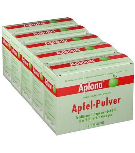 Was ist Aplona® und wofür wird es angewendet? Aplona® ist ein traditionelles pflanzliches Arzneimittel. Anwendungsgebiet: Traditionell angewendet: Zur Besserung der Symptome bei akuten unkomplizierten Durchfallerkrankungen, neben einer ausreichenden Flüssigkeitszufuhr und Diätmaßnahmen. Hinweis: Aplona® ist ein traditionelles Arzneimittel, das ausschließlich aufgrund langjähriger Anwendung für das Anwendungsgebiet registriert ist. Wie ist Aplona® anzuwenden? Wenden Sie Aplona® immer genau wie in der Packungsbeilage beschrieben an. Bitte fragen Sie bei Ihrem Arzt oder Apotheker nach, wenn Sie sich nicht ganz sicher sind. Falls vom Arzt nicht anders verordnet, ist die übliche Dosis: Kinder ab 3 Jahren und Erwachsene nehmen 5 bis 8 mal pro Tag je einen Portionsbeutel wie unten beschrieben ein. Einzeldosis: 1 Portionsbeutel (entsprechend 4,9 g getrocknetes Apfelpulver) Tagesdosis: 5-8 Portionsbeutel (24,5 – 39,2 g getrocknetes Apfelpulver) Für Kinder unter 3 Jahren ist die Anwendung nicht vorgesehen. Art der Anwendung: Soweit nicht anders verordnet, wird für jede Einnahme frisch der Inhalt eines Portionsbeutels Aplona® mit 1 Tasse (1/8 l) trinkwarmem abgekochten Wasser oder dünnem Tee umgerührt. Dann 5-10 Minuten stehen lassen. Eventuell mit Süßstoff, nicht mit Zucker, süßen. Aplona® kann trinkwarm oder auch kalt eingenommen werden. Aplona® darf nicht gekocht werden. Dauer der Anwendung: Nehmen Sie Aplona® ohne ärztlichen Rat nicht länger als 3 Tage ein. Bei fortdauernden Krankheitssymptomen oder beim Auftreten anderer als in der Packungsbeilage erwähnten Nebenwirkungen sollten Sie einen Arzt oder eine andere in einem Heilberuf tätige qualifizierte Person konsultieren. Bitte sprechen Sie mit Ihrem Arzt oder Apotheker, wenn Sie den Eindruck haben, dass die Wirkung von Aplona® zu stark oder zu schwach ist. Wenn Sie eine größere Menge Aplona® angewendet haben, als Sie sollten: Setzen Sie die Einnahme planmäßig fort. Die Einnahme einer größeren Menge Aplona® ist unbedenklich. Wenn Sie die Anwendung von Aplona® vergessen haben: Wenden Sie nicht die doppelte Dosis an, wenn Sie die vorherige Anwendung vergessen haben. Wenn Sie die Anwendung von Aplona® abbrechen: Eine Unterbrechung oder vorzeitige Beendigung der Behandlung ist unbedenklich. Was Aplona® enthält: Der Wirkstoff ist: 1 Portionsbeutel enthält 4,9 g getrocknetes Apfelpulver. Die sonstigen Bestandteile sind: hochdisperses Siliciumdioxid, Maisstärke. ...