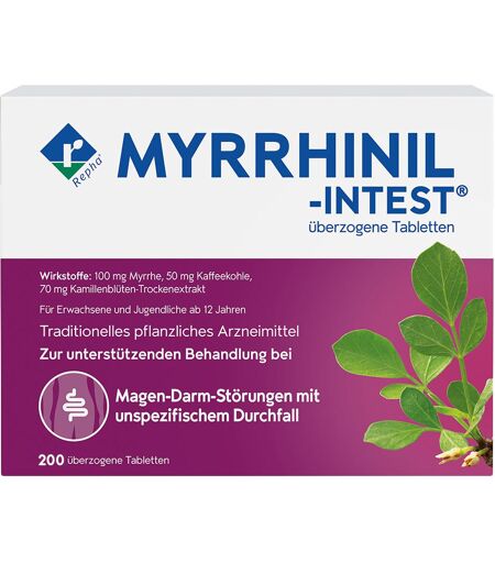 MYRRHINIL-INTEST® Myrrhe, Kamille & Kaffeekohle bei Magen-Darm-Störungen Traditionelles pflanzliches Arzneimittel bei Magen-Darm-Störungen die mit Durchfällen einhergehen Myrrhe wirkt u.a. entzündungshemmend, entkrampfend und stärkt die Darmbarriere Kamille wirkt u.a. entzündungshemmend, antibakteriell und entblähend Kaffeekohle zeigt neben entzündungshemmenden auch aufsaugende Eigenschaften, schädliche Stoffe können gebunden und ausgeschieden werden HILFT BEI DURCHFALL, KRÄMPFEN UND BLÄHUNGEN MYRRHINIL-INTEST® wird seit über 60 Jahren erfolgreich zur unterstützenden Behandlung bei Magen-Darm-Störungen mit unspezifischem Durchfall, begleitet von leichten Krämpfen und Blähungen eingesetzt. Bei folgenden Magen-Darm-Störungen – die mit Durchfällen einhergehen – hat sich die unterstützende Behandlung mit dieser Pflanzenkombination bewährt: Unspezifische Magen-Darm-Erkrankungen mit Krämpfen und Blähungen Durchfalldominantem Reizdarmsyndrom Chronisch-entzündliche Darmerkrankungen wie Colitis ulcerosa Unspezifische Durchfallerkrankungen Nahrungsmittelunverträglichkeiten mit Durchfall Pilzinfektionen im Darm SO WIRKEN MYRRHE, KAMILLE UND KAFFEEKOHLE MYRRHINIL-INTEST® ist in der Zusammensetzung einzigartig: Myrrhe, Kamille und Kaffeekohle – Arzneipflanzen mit einer langen Tradition. Die drei Arzneipflanzen greifen an verschiedenen Punkten im Magen-Darm-Trakt an („Multi-Target-Effekt“) und verstärken sich in ihrer Wirkung gegenseitig. Das Wissen um die Wirksamkeit beruht nicht nur auf Überlieferung und langjähriger therapeutischer Erfahrung, sondern auch auf aktuellen wissenschaftlichen Studien deutscher Universitäten und Kliniken. Vorteile auf einen Blick MYRRHINIL-INTEST® ist breit einsetzbar bei Magen-Darm-Störungen mit Durchfällen Durch die Multi-Target-Wirkung können Magen-Darm-Störungen umfassend behandelt werden Zugelassen für Erwachsene und Jugendliche ab 12 Jahren MYSTISCHE MYRRHE Die Myrrhe gehört zu den ältesten Heilmitteln der Menschheit. Myrrhe wird heute vorwiegend bei entzündlichen Erkrankungen eingesetzt. Besonders gut erforscht wurden in der jüngeren Vergangenheit die Wirkungen zur Stärkung der Darmbarriere und zur Linderung von Darmkrämpfen. Störungen der verschiedenen Funktionen des Magen-Darm-Trakts sind sehr häufig. Sie äußern sich in z.B. Blähungen, Krämpfen und Durchfall („Diarrhoe“). AKUTER DURCHFALL Hinter dem akuten, also plötzlich auftretenden Durchfall, steckt fast immer eine Infektion mit Viren oder Bakterien. Ein typisches Beispiel hierfür ist der Reisedurchfall. Aber auch Lebensmittelvergiftungen, Medikamente oder etwa der übermäßige Verzehr von Produkten mit Zuckeraustauschstoffen kommen als Ursache in Frage. CHRONISCHER DURCHFALL Der längerdauernde oder immer wieder auftretende chronische Durchfall hängt ursächlich oft mit verschiedenen Krankheiten zusammen, wie beispielsweise dem Reizdarmsyndrom, chronisch-entzündlichen Darmerkrankungen, Nahrungsmittelunverträglichkeiten oder einer exokrinen... ...