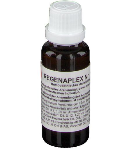 Zusammensetzung10 ml enthalten je 1,25 ml: Artemisia vulgaris D3, Atropa bella-donna D8, Conium maculatum D12, Cuprum metallicum D12,Hedera helix D8, Passiflora incarnata D3, Strychnos ignatii D6, Viola odorata e herba rec. D6Produktbezogene HinweiseWas müssen Sie vor der Einnahme von Regenaplex Nr. 139a beachten? Es sind keine Gegenanzeigen bekannt.Besondere Vorsicht bei der Einnahme von Regenaplex Nr. 139a ist erforderlich in der Schwangerschaft und Stillzeit. Da keine ausreichend dokumentierten Erfahrungen zur Anwendung vorliegen, sollte das Arzneimittel dann nur nach Rücksprache mit dem Arzt angewendet werden. Wenden Sie Regenaplex Nr. 139a auch bei Kindern unter 12 Jahren nur nach Rücksprache mit dem Arzt an, da keine ausreichend dokumentierten Erfahrungen vorliegen.Wechselwirkungen mit anderen Arzneimitteln sind keine bekannt.Allgemeiner Hinweis: Die Wirkung eines homöopathischen Arzneimittels kann durch allgemein schädigende Faktoren in der Lebensweise und durch Reiz- und Genussmittel ungünstig beeinflusst werden. Falls Sie sonstige Arzneimittel einnehmen, fragen Sie Ihren Arzt.Wie ist Regenaplex Nr. 139a anzuwenden? Soweit nicht anders verordnet nehmen Sie bei akuten Zuständen von dem Arzneimittel alle halbe bis ganze Stunde, höchstens 6 mal täglich je 5 Tropfen ein. Bei chronischen Verlaufsformen nehmen Sie 1 – 3 mal täglich je 5 Tropfen ein. Eine über 1 Woche hinausgehende Anwendung sollte nur nach Rücksprache mit einem homöopathisch erfahrenen Therapeuten erfolgen. Bei Besserung der Beschwerden ist die Häufigkeit der Einnahme zu reduzieren.Wenn sich Ihre Beschwerden verschlimmern oder nach einigen Tagen keine Besserung eintritt, müssen Sie auf jeden Fall einen Arzt aufsuchen. Auch homöopathische Arzneimittel sollten nicht über längere Zeit ohne ärztlichen Rat eingenommen werden. Wenn Sie weitere Fragen zur Anwendung des Arzneimittels haben, fragen Sie Ihren Arzt oder Apotheker.Welche Nebenwirkungen sind möglich? Es sind keine Nebenwirkungen bekannt.Hinweis: Bei der Anwendung von homöopathischen Arzneimitteln können sich vorhandene Beschwerden vorübergehend verschlimmern (Erstverschlimmerung). In diesem Fall sollten Sie das Arzneimittel absetzen und ihren Arzt befragen. Wenn Sie Nebenwirkungen beobachten, teilen Sie diese bitte ihrem Arzt oder Apotheker mit.Andere Warnhinweise:Enthält 50 Vol.-% Alkohol ...