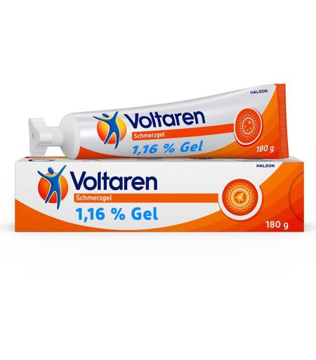 Voltaren Schmerzgel 11,6 mg/g Voltaren Gel bei Rückenschmerzen, 180 gDas Schmerzgel mit 3-fach-Wirkung: stoppt den Schmerz, bekämpft die Entzündung und beschleunigt die Heilung. Deutschlands Nr. 1 bei Muskelschmerzen, Rückenschmerzen und Gelenkschmerzen (IMS OTC® Report Apotheke: 02A1, 02E1, 02G2, MAT 12/2020). DISKRET: Neutrale Farbe und angenehmer Geruch für diskrete Anwendung, ANWENDUNG: Tragen Sie Voltaren Schmerzgel drei bis vier Mal täglich auf. AKTIVE SCHMERZLINDERUNG: Voltaren Gel für aktive Linderung von akuten Rückenschmerzen, Nackenschmerzen, Schulterschmerzen, Gelenkschmerzen und Arthrose der Knie- und Fingergelenke 3-FACH-WIRKUNG: Schmerzsalbe lindert Schmerzen, reduziert Entzündungen und beschleunigt den natürlichen Heilungsprozess BEKÄMPFT ENTZÜNDUNGEN: Voltaren Schmerzgel dringt tief in das Gewebe ein, um eine der häufigsten Ursachen für Rückenschmerzen zu behandeln: die Entzündung. REDUZIERT NACKENSCHMERZEN*: Eine erste Schmerzlinderung tritt bereits nach einer Stunde ein *Bewegungsschmerzen bei akuten Nackenschmerzen WENIGER NEBENWIRKUNGEN: Dank gezielter Anwendung des Gels, gelangt der Wirkstoff nur in geringen Mengen in den gesamten Körper*, für weniger systemische Nebenwirkungen. WIE PROFITIEREN SIE?Sie suchen nach wirksamer Schmerzlinderung, damit Sie wieder das Beste aus Ihrem Tag herausholen können? Tragen Sie Voltaren Schmerzgel auf, um aktive Schmerzlinderung für Ihren Rücken, Nacken, Schultern oder Gelenke zu erfahren – und spüren Sie wieder die Freude an der Bewegung. Voltaren Schmerzgel mit der 3-fach Wirkung stoppt den Schmerz, bekämpft die Entzündung und beschleunigt die Heilung. Der entzündungshemmende Wirkstoff im Voltaren Gel dringt tief in das Gewebe ein und bietet so Linderung bei Rückenschmerzen, Muskelschmerzen, Nackenschmerzen und Schulterschmerzen und reduziert Bewegungsschmerzen nach nur einer Stunde*. Das Schmerzgel hat einen angenehm kühlenden und beruhigenden Effekt. Durch das gezielte Auftragen auf den schmerzenden Bereich kommt es beim Voltaren Schmerzgel zu weniger systemischen Nebenwirkungen als bei einer Schmerztablette.WIE WIRD ES ANGEWENDET?Tragen Sie eine kleine, circa kirsch- bis walnussgroße Menge Schmerzgel direkt auf die schmerzende Stelle auf und massieren Sie das Gel sanft ein. Lassen Sie es einige Minuten einziehen und waschen Sie Ihre Hände, bevor Sie sich anziehen. Voltaren Schmerzgel hat eine nicht fettende Formulierung und lässt sich leicht in die Haut einreiben. Dank seines Komfortverschlusses ist eine saubere und schnelle Anwendung einfach. Massieren Sie das Gel mithilfe des Applikators in die Haut über der schmerzenden Stelle ein und lassen es einige Minuten einziehen, bevor Sie Ihre Kleidung anziehen.*bei Nackenschmerzen vs. PlaceboInhaltsstoffe:Der Wirkstoff ist: Diclofenac-N-Ethylethanamin 11,6 mg in 1 g Gel (entsprechend 10mg Diclofenac-Natrium). Die sonstigen Bestandteile sind: Gereinigtes Wasser; 2-Propanol; Propylenglycol; Cocoylcaprylocaprat (Ph.Eur.); Paraffin;... ...