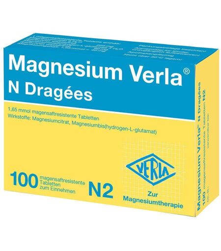 Magnesium ist ein lebensnotwendiger Mineralstoff, der für eine Vielzahl von Körperfunktionen benötigt wird. Aufgrund einseitiger Ernährungsgewohnheiten, veränderter Anbau- und Düngungsmethoden und Lebensmittelbearbeitungsprozesse (z.B. weißes Mehl, rieselfähig gemachtes Speisesalz) ist eine ausreichende Versorgung mit Magnesium heute nicht immer gewährleistet. Ein erhöhter Magnesiumbedarf, z.B. in der Schwangerschaft und Stillzeit, sowie Verluste über den Darm oder Urin (z.B. durch die Einnahme von Medikamenten oder bei Stress) können ebenfalls zu einem Magnesiummangel führen. Ein Mangel an Magnesium kann sich in einer Vielfalt von Beschwerden äußern, darunter Waden- und Zehenkrämpfe, Verspannungen im Nacken-, Schulter- und Rückenbereich, Lidzucken, Nervosität, innere Unruhe, Kopf- und Herzschmerzen oder vorzeitige Wehen in der Schwangerschaft. Die Magnesium-Arzneimittel von Verla-Pharm beseitigen zuverlässig den Magnesiummangel und sind gut verträglich. AnwendungDie Einnahme von Magnesium Verla® Arzneimitteln ist dann notwendig, wenn der Körper nicht ausreichend mit Magnesium versorgt ist und Magnesiummangel-Beschwerden auftreten. Die empfohlene Tagesdosierung an Magnesium (120-365 mg pro Tag) sollte idealerweise auf 2-3 Einnahmen pro Tag aufgeteilt werden, da der Körper kleine Mengen an Magnesium besser aufnehmen kann als große Einmaldosen. Um die Speicher mit Magnesium aufzufüllen, sollte die Einnahme mindestens über einen Zeitraum von 4 Wochen erfolgen.Wirksame Bestandteile:205 mg Magnesiumcitrat 9 H2O (berechnet wasserfrei) und 90 mg Magnesiumbis(hydrogen-L-glutamat) 4 H2O (berechnet wasserfrei), entsprechend 40 mg Magnesium pro magensaftresistente Tablette. Pflichttext:Wirkstoffe:N Dragées: Magnesiumcitrat, Magnesiumbis-(hydrogen-L-glutamat)Anwendungsgebiete:Behandlung von therapiebedürftigen Magnesium-Mangelzuständen, die keiner Injektion/Infusion bedürfen. Nachgewiesener Magnesiummangel, wenn er Ursache für Störungen der Muskeltätigkeit (neuromuskuläre Störungen, Wadenkrämpfe) ist.Hinweise:Enthalten Sucrose (Zucker) u. Glucose (entspr. ca. 0,01 BE) ...