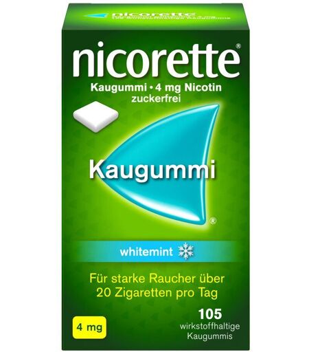 Mit nicorette® endlich aufhören zu rauchen nicorette® Kaugummi whitemint 4 mg – Eigenschaften des Nikotinkaugummis auf einen Blick Mit dem Rauchen aufhören mit nicorette® Kaugummi whitemint mit 4 mg Nikotin nicorette® Kaugummi whitemint 4 mg ist ein Nikotinkaugummi zur Raucherentwöhnung. Das aktive Kauen löst den Wirkstoff aus dem Kaugummi, hilft Sie abzulenken und lindert Ihr Rauchverlangen und weitere Entzugserscheinungen, die beim Aufhören mit dem Rauchen auftreten können. Dazu zählen beispielsweise innere Unruhe, gesteigerter Appetit und erhöhte Reizbarkeit. Das nicorette® Kaugummi 4 mg ist zuckerfrei und hat einen Zahnweiß-Effekt. Eine Packung enthält 30 Kaugummis und reicht bei einer Verwendung von 10 Kaugummis pro Tag für circa 3 Tage. In den ersten Wochen der Anwendung wird das Kauen von 8-12 Kaugummis pro Tag empfohlen. So geht's: Nikotinersatztherapie mit dem nicorette® Kaugummi 4 mg Aus dem Kaugummi wird durch aktives Kauen Nikotin gelöst. Über die Mundschleimhaut gelangt das Nikotin dann in die Blutbahn und erhöht den Nikotinspiegel im Blut. So lindert es Rauchverlangen und weitere Entzugserscheinungen. Die Anwendung wird über 12 Wochen empfohlen, wobei Sie Ihrem Körper nach und nach weniger Nikotin zuführen, indem Sie die Anzahl Kaugummis pro Tag reduzieren und Ihren Körper vollständig entwöhnen. Anwendung des nicorette® Kaugummi 4 mg - Auf das richtige Kauen kommt es an! Damit das Nikotinkaugummi seine Wirkung voll entfalten kann, muss es auf eine bestimmte Art und Weise von Ihnen gekaut werden. Um Sie bei der richtigen Anwendung bestmöglich zu unterstützen, hat nicorette® einen Geschmacksindikator NDI (Nicotin-Dosierungs-Indikator) entwickelt. Kauen: Etwa 1 Minute lang kauen bis sich der Geschmack deutlich intensiviert. Nun ist ausreichend Nikotin freigesetzt. Pausieren: Schieben Sie das Kaugummi nun in die Wange bis der Geschmack wieder nachlässt. Kauen: Wiederholen Sie die beiden Schritte Kauen und pausieren bis zu 30 Minuten lang. Kauen Sie etwa 1 nicorette® Kaugummi pro Stunde oder immer dann, wenn Sie sonst eine Zigarette geraucht hätten. Pro Tag werden in der Regel 8-12 Kaugummis benötigt. Kauen Sie pro Tag maximal 16 Kaugummis. ...