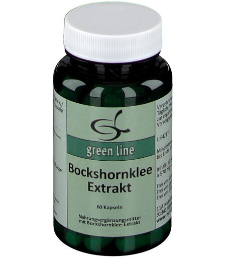 Nahrungsergänzungsmittel sind kein Ersatz für eine ausgewogene Ernährung und gesunde Lebensweise.green line Bockshornkleeextrakt Nahrungsergänzungsmittel aus dem Extrakt des Samens des Bockshornklees.Bockshornklee (Trigonella foenum-graecum) gehört zur Unterfamilie Schmetterlingsblütler (Faboideae) innerhalb der Familie der Hülsenfrüchtler (Fabaceae). Der Bockshornklee ist eng verwandt mit dem Schabzigerklee (Trigonella caerulea). Der Bockshornklee bevorzugt Standorte mit viel Sonnenlicht und eher lehmigem Boden.In trockenen Ländern im Nahen Osten, in Nordafrika und in Spanien wird Bockshornklee als Nahrungsmittel oder Futterpflanze angebaut und geröstet, gekocht oder frisch verzehrt. Er toleriert auch einen hohen Bodenversalzungsgrad. Darüber hinaus wird er als Gewürz verwendet und ist beispielsweise wesentlicher Bestandteil von Currypulvermischungen. Ebenso werden die Samen – wie auch Schabzigerklee – zum Beispiel in Südtirol als Brot- oder Käsegewürz verwendet.Aus den Samen des Bockshornklees kann ein fettes Öl mit Triglyceriden der Linolen-, Palmitin-, Linol- und Ölsäure gewonnen werden. Sie enthalten Lecithin und Phytosterin, Schleimstoffe, Saponine und Sapogenine, die Vitamine A und D, Phosphor und Cholin, das angeblich einer Verfettung der Leber entgegenwirkt, den Stoffwechsel positiv beeinflussen und einer Arteriosklerose vorbeugen soll.Außerdem enthält Bockshornklee die Aminosäure Histidin, die angeblich Leberschädigungen entgegenwirken soll.Zutaten: Füllstoffe mikrokristalline Cellulose und Maltodextrin, Bockshornklee-Extrakt (Extrakt aus den Samen des Bockshornklees), HydroxypropylmethylcelluloseFrei von GlutenFrei von LactoseFrei von GelatineFrei von FarbstoffenOhne Zusatz von Konservierungsstoffen Zusammensetzung pro 2 KapselnBockshornklee-Extrakt300 mgVerzehrempfehlung: 2 Kapseln pro Tag. Hinweis: Die angegebene empfohlene Tagesmenge darf nicht überschritten werden. Aufbewahrung: Kühl (6-25 °C) und lichtgeschützt lagern. Außerhalb der Reichweite von kleinen Kindern aufbewahren. Nettofüllmenge: 60 Kapseln = 31,0 gHersteller:11A nutritheke GmbHHauptstraße 3a91341 Röttenbach ...
