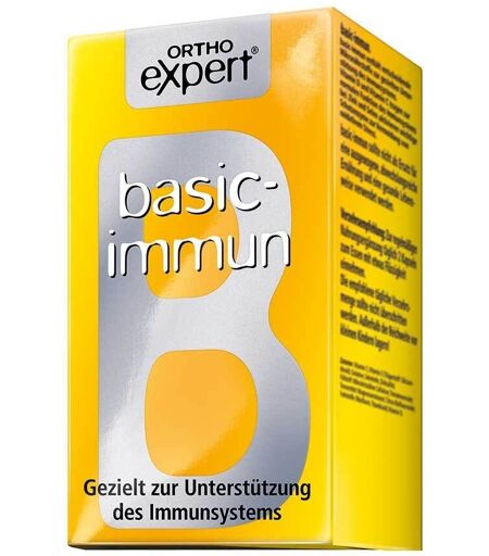 Nahrungsergänzungsmittel sind kein Ersatz für eine abwechslungsreiche und ausgewogene Ernährung und eine gesunde Lebensweise. Orthoexpert® basic-immunGezielt zur Unterstützung des Immunsystems mit Zink Selen Vitamin C und DWenn das Immunsystem Unterstützung braucht.Fast unbemerkt leistet unser Immunsystem Tag für Tag effiziente Arbeit. Doch in bestimmten Situationen, z.B. bei häufigem Stress, intensivem Sport oder nach einer gerade überstandenen Krankheit sowie anderen besonderen Belastungen, ist die Immunabwehr besonders gefordert. Dann hat der Körper einen erhöhten Bedarf an Mikronähr- stoffen. basic-immun enthält entscheidende Mikronährstoffe zur Unterstützung des Immunsystems. Zink und Selen beispielsweise sind für ein funktionierendes Immunsystem wichtig, können aber vom Körper nicht selbst gebildet werden. Die beiden Immun-Bausteine aktivieren wichtige Schutzenzyme und tragen gemeinsam mit Vitamin E dazu bei, die Zellen vor oxidativem Stress zu schützen. Zusätzlich tragen Vitamin D und Vitamin C zur normalen Funktion des Immunsystems bei.basic-immun ist die hoch dosierte Kombination zur Unterstützung des Immunsystems. Mit Vitamin C, Zink, Selen und Vitamin D enthält es gezielt ausgewählte Mikronährstoffe. Deshalb ist basic-immun empfeh- lenswert zur Nahrungsergänzung bei Personen, deren Immunsystem besonders belastet ist.Immer gut versorgt mit unseren Orthoexpert®-Produkten. Für eine ausreichende Versorgung mit Nährstoffen ist eine ausgewogene Ernährung sehr wichtig. In verschie- denen Belastungssituationen besteht aber häufig ein erhöhter Bedarf an Nährstoffen wie Vitaminen und Mineral- stoffen. Jedes einzelne Orthoexpert®- Produkt ist jeweils abgestimmt auf bestimmte Belastungssituationen. Die gezielten Kombinationen und Dosierungen basieren auf ernährungs- wissenschaftlichen Erkenntnissen.basic-immun – ein Produkt von Weber & Weber. Mit basic-immun haben Sie sich für ein wertvolles Nahrungsergänzungs- mittel aus dem Hause Weber & Weber entschieden – ein guter Entschluss. Unser Unternehmen stellt mit modernen Gesundheits- produkten sowie phytotherapeutischen und homöo- pathischen Arzneimitteln schon seit über 60 Jahren die natürliche Erhaltung Ihrer Gesundheit in den Mit- telpunkt. Wir wollen ganz einfach, dass es Ihnen gut geht. Zutaten: Vitamin C; Gelatine; Vitamin E; Füllstoff: Mikrokristalline Cellulose; Zinksulfat; Selenhefe; Tomatenextrakt; Citrus-Bioflavonoide; Trennmittel: Magnesiumsalze der Speisefettsäuren; Farbstoffe: , Riboflavine; Vitamin D.Nährwerte: Durchschnittliche Nährwerte pro 2 Kapseln (= Tagesportion) % NRV* Zink 20 mg 200 Selen 100 µg 182 Vitamin C 500 mg 625 Vitamin D 20 µg 400 Vitamin E (alpha-TE**) 134 mg 1117 Lycopin 5 mg - Citrus-Bioflavonoide 5 mg - *NRV=Nährstoffbezugswerte nach EU-Verordnung Nr. 1169/2011** TocopheroläquivalenteVerzehrsempfehlung:Zur regelmäßigen Nahrungsergänzung täglich 2 Kapseln zum Essen mit etwas Flüssigkeit einnehmen. Die empfohlene tägliche Verzehrsmenge darf nicht überschritten... ...