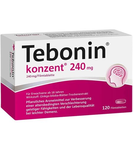 Tebonin® - Die Nr. 1* für Gedächtnis & Konzentration¹ Höchste Qualität – Erforscht, entwickelt & hergestellt in Deutschland Die kleinste Tablette mit der Tagesdosis von 240 mg Ginkgoextrakt im Markt Tebonin® konzent® 240 mg bei nachlassender Gedächtnisleistung Bei nachlassender Gedächtnisleistung frühzeitig handeln Heller Kopf trotz grauer Haare: Die mentale Beweglichkeit lässt mit den Jahren keineswegs zwangsläufig nach. Denn unser Gehirn lässt sich mit einem Muskel vergleichen: Übung und regelmäßige Unterstützung können die Leistungsfähigkeit langfristig erhalten. Ratsam dabei ist, frühzeitig aktiv zu werden. Hierfür gibt es wirksame Hilfe aus der Natur. Tebonin® – Die Nr. 1* für Gedächtnis & Konzentration** Tebonin® konzent® 240 mg mit dem standardisierten Ginkgo-Spezialextrakt EGb 761® kann dem altersbedingten geistigen Abbau entgegenwirken, wenn die Tabletten rechtzeitig eingenommen werden, das heißt sobald sich erste Anzeichen von Gedächtnisstörungen zeigen, und sofern Tebonin® konzent® 240 mg über längere Zeit angewendet wird. Die gut untersuchte Wirksamkeit des Präparats, welches in Deutschland erforscht, entwickelt und hergestellt wird, beruht auf verschiedenen Mechanismen. Erstens verbessert Tebonin® konzent® 240 mg die Durchblutung auch der feinsten Blutgefäße, die unsere grauen Zellen mit Sauerstoff und Nährstoffen versorgen. Zweitens erhöht der Ginkgo-Spezialextrakt EGb 761® in Tebonin® konzent® 240 mg die Anpassungsfähigkeit des Gehirns. Drittens wirkt sich Ginkgo positiv auf jene Botenstoffe aus, die für Gedächtnis und Merkfähigkeit wichtig sind. *IQVIA PharmaScope, Ginkgo-Apothekenmarkt nach Umsatz und Absatz, MAT 12/2020 ** Bei altersbedingten geistigen Leistungseinbußen Gehirn und Geist stärken mit Tebonin® konzent® 240 mg Die Anwendung von Tebonin® konzent® 240 mg ist einfach: Das Präparat ist so hoch dosiert, dass einmal täglich eine Tablette genügt. Bei nachlassender Gedächtnisleistung tritt eine spürbare Wirkung nach einer täglichen Einnahme über zwei bis vier Wochen ein. Die empfohlene Anwendungsdauer beträgt mindestens acht Wochen. Tebonin® konzent® enthält einen rein pflanzlichen Extrakt und ist gut verträglich, es kann daher auch über einen längeren Zeitraum eingenommen werden. Das Besondere an Tebonin® konzent®: Dank der kleinsten Tablette mit der Tagesdosis von 240 mg Ginkgoextrakt im Markt leicht zu schlucken und frei von Lactose. Wollen Sie mehr über den Ginkgo-Spezialextrakt EGb 761® und die Wirkungsweise von Tebonin® erfahren? Dann laden Sie sich hier die Tebonin® Broschüre herunter. Ebenfalls können Sie sich hier auch kostenlos die Tebonin® Übungsbroschüre mental-aktiv mit vielen Gedächtnisübungen downloaden. Pflichttext: Tebonin® konzent® 240 mg. Wirkstoff: Ginkgo-biloba-Blätter-Trockenextrakt. Zur Verbesserung einer altersbedingten Verschlechterung geistiger Fähigkeiten und der Lebensqualität bei leichter Demenz. Zu Risiken und Nebenwirkungen lesen Sie die Packungsbeilage und fragen Sie Ihre Ärztin,... ...