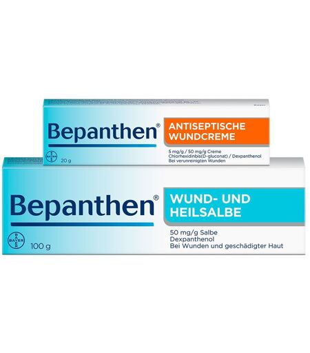 Bepanthen® Antiseptische Wundcreme schützt vor Infektionen Ob Schnitt-, Schürf- oder Risswunde – kommt es zu einer oberflächlichen Verletzung der Haut, ist unser wertvollster Schutzschild gegen äußere Einflüsse geschädigt. Und das öffnet Erregern sozusagen Tür und Tor. Um eine Infektion zu vermeiden, ist daher die richtige Wundversorgung gefragt. Neben Ausspülen unter fließendem Wasser bedeutet das auch, dass die Wunde desinfiziert werden sollte, sobald sie nicht mehr nässt – und zwar mit der Bepanthen® Antiseptischen Wundcreme. Die Wundcreme beinhaltet das Antiseptikum Chlorhexidin, das eine antibakterielle und fungizide (pilzabtötende) Wirkung besitzt, sowie den Wirkstoff Dexpanthenol zur Unterstützung des Heilungsprozesses. Bepanthen® Antiseptische Wundcreme ermöglicht den Schutz vor Infektionen und ist aufgrund ihrer Creme-Formulierung (Öl-in-Wasser) angenehm kühlend. Die Wundcreme lässt sich außerdem leicht handhaben: Tragen Sie zweimal täglich einen dünnen Salbenstrang auf die betroffene Stelle auf und verteilen Sie die Creme. Die Bepanthen® Antiseptische Wundcreme zieht schnell ein und fettet nicht. Je nach Art und Verlauf der Verletzung unterscheidet sich die Anwendungsdauer; in der Regel sind es ein bis zwei Wochen. Sollte sich das Wundbild nicht bessern oder gar verschlimmern, suchen Sie bitte einen Arzt auf. Wenden Sie die Bepanthen® Antiseptische Wundcreme erst an, wenn die Wunde nicht mehr nässt. Hinweis für Schwangere und Stillende: Aktuell liegen keine klinischen Daten über die Anwendung der Bepanthen® Antiseptischen Wundcreme in Schwangerschaft und Stillzeit vor. Von einer großflächigen Anwendung ist abzuraten; Stillende sollten die Wundcreme nicht im Bereich der Brust verwenden. Bewahren Sie die Bepanthen® Antiseptische Wundcreme außer Reichweite von Kindern auf. Verwenden Sie das Produkt nicht nach Ablauf des Verfallsdatums. Dieses ist auf der Tube und der Faltschachtel zu finden und bezieht sich auf den letzten Tag im Monat. Die Bepanthen® Antiseptische Wundcreme ist als 20 Gramm Tube erhältlich. Die Wirkstoffe der Bepanthen® Antiseptischen Wundcreme Bei Chlorhexidin handelt es sich um ein effektives Antiseptikum, das antibakterielle und fungizide (pilzabtötende) Eigenschaften besitzt. Zur Unterstützung der Regeneration dient der Wirkstoff Dexpanthenol. Wie bei allen Arzneimitteln kann es auch bei der Anwendung der Bepanthen® Antiseptischen Wundcreme zu Nebenwirkungen kommen. Mehr hierzu und weitere Hinweise entnehmen Sie bitte dem Beipackzettel. Da kleinere Verletzungen im Alltag schnell passiert sind, bietet es sich an, eine desinfizierende Wundcreme in der Hausapotheke zu haben. Bepanthen® Wund- und Heilsalbe unterstützt den Heilungsprozess Sei es ein kleiner Schnitt mit dem Messer oder eine oberflächliche Wunde nach einem Sturz: Kleinere Verletzungen wie Schnitte, Kratzer oder Schürfwunden kommen im Alltag immer wieder vor. In der Regel sind diese auch nicht weiter schlimm – die Haut selbst beginnt jetzt mit der Arbeit und... ...