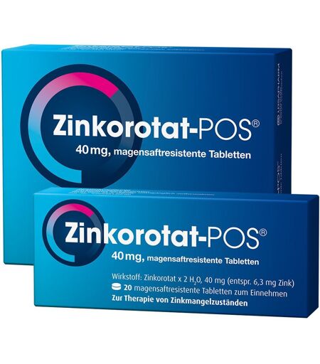 Set bestehend aus:Zinkorotat-POS® 100 St und Zinkorotat-POS® 20 StZinkorotat-POS® – elementarer Schutz für Ihre GesundheitZinkmangel kann sich in vielfältiger Weise äußern. Häufige Infekte*, brüchige Fingernägel, stumpfes Haar und Hautprobleme können auf einen Zinkmangel zurückgehen. Mit Zinkorotat-POS® stellen Sie eine individuelle und an den Bedarf angepasste Zinkversorgung sicher und gleichen so einen Zinkmangel effektiv aus. In Zinkorotat-POS® ist das wertvolle Spurenelement Zink an die natürliche Orotsäure gebunden. Dadurch wird eine gute Aufnahme in den Organismus gewährleistet. Aufgrund seines magensaftresistenten Films ist Zinkorotat-POS® sehr gut verträglich.WirkstoffZinkorotatAnwendungsgebiete:Begleittherapie bei akuten Schwellungszuständen nach Operationen und Verletzungen, insbesondere der Nase und der Nebenhöhlen.Zu Risiken und Nebenwirkungen lesen Sie die Packungsbeilage und fragen Sie Ihren Arzt oder Apotheker.Anwendung Zinkorotat-POS® Tabletten:Zur Behandlung von Zinkmangelerscheinungen, wie z.B. Wundheilungsstörungen nach chirurgischen EingriffenBei erblicher Erkrankung, die mit zu Durchfällen führenden Darmentzündungen und vielfältigen Hautveränderungen einhergeht und durch eine ungenügende Zinkaufnahme aus dem Darm verursacht wird (Akrodermatitis enteropathica)Bei Akne vulgarisBei Aktivierung der körpereigenen Abwehr, zum Beispiel bei Tumoren und bei Abwehrschwäche bedingt durch langandauernde InfektePotenzstörungenZur begleitenden Behandlung bei Zuckerkrankheit (Diabetes mellitus)Dosierung Zinkorotat-POS® Tabletten:Bei mittleren und schweren Formen von Zinkmangel- Erscheinungen: Als Anfangsdosis (1. Woche) 3mal täglich 1 TabletteZur Dauerbehandlung 1-3mal täglich 1 TabletteFür Kinder über 12 Jahre und Jugendliche gelten die gleichen Mengen wie für ErwachseneFür Kinder von 7-11 Jahren gilt 3/4, für Kinder von 4-6 Jahren 2/3 und für Kinder von 1-3 Jahren die Hälfte der MengeArt und Weise Zinkorotat-POS® Tabletten:Die Tabletten sollten ca. 1/2 Stunde vor den Mahlzeiten unzerkaut mit etwas Flüssigkeit eingenommen werden.Kontraanwendung:Gegen alle Arzneimittel können Überempfindlichkeitsreaktionen auftreten, dann müssen Sie das Medikament sofort absetzen. Wenn schon eine Allergie gegen den Wirkstoff oder einen der sonstigen Bestandteile des Arzneimittels bekannt ist, darf es nicht angewendet werden.Nebenwirkungen Zinkorotat-POS® Tabletten:Überdosierungserscheinungen wie: Metallgeschmack auf der ZungeKopfschmerzenDurchfallErbrechenWechselwirkungen:Bei gleichzeitiger Einnahme von Zink und Eisensalzen kann die Aufnahme von Zink vermindert werden. Zink kann die Aufnahme von Kupfer beeinträchtigen.Zink wird durch Komplexbildner, z.B. Tetracyclin- und Chinolon-Antibiotika (GyraseHemmer), D-Penicillamin, Dimercaptopropansulfonsäure (DMPS), Ethylendiamintetraessigsäure (EDTA), gebunden. Die gleichzeitige Einnahme von Zink und Chinolon- bzw. Tetracyclin-Antibiotika... ...