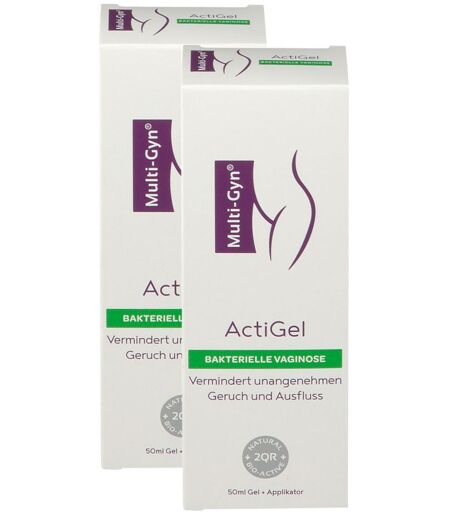 Multi-Gyn ActiGel Vaginalgel zur wirksamen Linderung von Symptomen einer bakteriellen Vaginose Bakterielle Vaginose Gel-Behandlung für Frauen BV-Behandlung Damen Bakterielle Vaginose bei Frauen 50 ml Gel-Tube mit Applikator WIRKSAM GEGEN BAKTERIELLE VAGINOSE: Mit Multi-Gyn ActiGel können Sie die Symptome einer bakteriellen Vaginose und fischigen Geruch im Genitalbereich wirksam und sanft behandeln. Unser Produkt zur inneren Anwendung stellt das optimale pH-Gleichgewicht für Frauen wieder her und sorgt für ein gesundes Scheidenmilieu. Unser Multi-Gyn ActiGel ist auf Basis natürlicher Inhaltsstoffen hergestellt und enthält weder Parfüm noch Hormone. SANFT UND PARFÜMFREI, MIT AUF BASIS NATÜRLICHER INHALTSSTOFFEN HERGESTELLT: Unser Vaginalgel basiert auf dem patentierten 2QR-Komplex. Dieser enthält pflanzliche Inhaltsstoffe aus der Aloe barbadensis, der die Vagina auf sanfte und natürliche Weise schützt und die Symptome einer bakteriellen Vaginose lindert. Mit Multi-Gyn ActiGel können Sie eine bakterielle Vaginose ohne Antibiotika behandeln. Das Vaginalgel ist sehr gut verträglich, vegan und ohne künstliche Duftstoffe hergestellt. OPTIMALE VAGINALFLORA: Zu den Symptomen einer bakteriellen Vaginose gehören häufig ein fischiger Geruch und wässriger Ausfluss. Multi-Gyn ActiGel behandelt bakterielle Vaginose und die damit verbundenen Symptome wie unerwünschten Ausfluss und Geruch. Behandeln Sie die Symptome mit Multi-Gyn ActiGel, um eine effektive Linderung zu erhalten. Multi-Gyn ActiGel verbessert die Vaginalflora, unterstützt die Regeneration des Gewebes und optimiert den vaginalen pH-Wert. Jede Tube enthält ca. 25 Anwendungen. EINFACHE ANWENDUNG: Mit dem praktischen Applikator können Sie das Gel ohne Verletzungsgefahr innerlich anwenden. Zur äußeren Anwendung tragen Sie das Gel einfach mit dem Finger im äußeren Genitalbereich auf. Zur Behandlung von vaginalen Beschwerden empfehlen wir, Multi-Gyn ActiGel an 5 aufeinanderfolgenden Tagen zweimal täglich anzuwenden, um einen gesunden pH-Wert in Ihrer Vagina zu erhalten. Sie können Multi-Gyn ActiGel jedoch auch immer verwenden, wenn Sie eine Linderung wünschen. Mulit-Gyn ActiGel hat einen für die Scheide optimalen, niedrigen pH-Wert. Nach der Anwendung können Sie eventuell ein Brennen und/oder Prickeln verspüren. Dies ist normal und wird rasch vergehen. UNSERE STÄRKEN UND WERTE: Es ist uns hier bei Multi-Gyn wichtig, Frauen natürliche Produkte anzubieten, die nicht nur behandeln, sondern Ihnen helfen, sich wieder wohlzufühlen, was bei unangenehmen Symptomen der Schlüssel ist. Wir können mit Stolz behaupten, dass alle unsere Produkte auf natürlichen Inhaltsstoffen basieren und sehr gut verträglich sind. Ihre Intimgesundheit liegt uns am Herzen. Für die Anwendung des Vaginalgels im inneren Intimbereich gehen Sie wie folgt vor: Schrauben Sie den Applikator auf die Tube und entfernen Sie die Kappe. Drücken Sie die Tube leicht, bis das Gel... ...