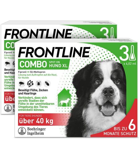 FRONTLINE COMBO® für Hunde FRONTLINE COMBO® bietet Schutz vor Flöhen, Zecken und Haarlingen und wirkt besonders nachhaltig gegen Flöhe. FRONTLINE COMBO® tötet Flöhe ab und hemmt gleichzeitig die Entwicklung der Eier, Larven und Puppen von Flöhen. So wird auch die häusliche Umgebung vor Flohbefall geschützt. Alle Vorteile auf einen Blick: Schutz gegen Flöhe, Zecken und Haarlinge Nachhaltiger Schutz gegen Flöhe Hemmt die Entwicklung der Eier, Larven und Puppen von Flöhen Schützt die häusliche Umgebung vor Flohbefall Die Wirkung gegen adulte Flöhe hält bei Hunden bis zu 8 Wochen an Einfach in der Anwendung Kann bei Hunden ab 8 Wochen oder 2 kg angewendet werden Auch für trächtige und säugende Hündinnen geeignet. Jetzt rezeptfrei erhältlich Ab 2022 rezeptfrei in der Apotheke erhältlich Warum sollten Sie Ihren Hund besonders vor Flöhen schützen? Flöhe sind ganzjährig aktiv und werden in der Natur vom Haustier aufgelesen. Eine kurze Begegnung mit tierischen Artgenossen oder Wildtieren wie z.B. Igeln reicht aus, um sich eine Flohplage verbunden mit diversen Krankheitsrisiken ins Zuhause zu holen. Die Behandlung eines Flohbefalls dauert in der Regel 2-4 Monate. Erwachsene Flöhe, die auf dem Tier sichtbar sind, machen nur 5% der gesamten Flohpopulation aus. Der Rest der Population (Eier, Larven, Puppen) breitet sich fast unsichtbar und rasend schnell im häuslichen Umfeld aus. Ein Floh kann täglich 30-50 Eier legen – diese fallen aus dem Haarkleid in die Umgebung des Tieres. Daraus schlüpfen Larven, die sich mehrmals Häuten und Verpuppen bis schließlich adulte Flöhe schlüpfen. Dieser Zyklus dauert ca. 3-4 Wochen. Findet man also 10 Flöhe – bedeutet das pro Tag 300-500 Eier. So entsteht rasend schnell eine Plage. Wie wirkt FRONTLINE COMBO®: Die Wirkung von FRONTLINE COMBO® basiert auf der Kombination der Wirkstoffe Fipronil und (S)-Methopren. Fipronil stört die Reizleitung von Insekten (z.B. Flöhe und Haarlinge) und Spinnentieren (z.B. Zecken), so dass die Parasiten absterben. Der Wirkstoff wirkt bei Wirbellosen, aber nicht bei Säugetieren wie Katzen, Hunden oder auch dem Menschen. (S)-Methopren ist ein Wachstumsregulator für Insekten (IGR), der die Entwicklung der unreifen Stadien der Insekten hemmt. (S)-Methopren durchdringt die Eischale frisch gelegter Floheier oder wird durch die Kutikula der adulten Flöhe aufgenommen. Zusätzlich wird die Entwicklung von Larven und Puppen gestört, so dass die Umgebung des behandelten Tieres von diesen Stadien freigehalten werden kann. Wie schnell tritt die Wirkung von FRONTLINE COMBO® ein? Beginnend 2 Tage nach der Behandlung werden Flöhe innerhalb von 24 Stunden abgetötet und Zecken sowie Haarlinge innerhalb von 48 Stunden. Anwendung: FRONTLINE COMBO® ist ein Spot-On und besonders einfach in der Anwendung: Eine Pipette aus der Schachtel nehmen. Pipettenspitze aufrecht halten. Leicht klopfen, damit sich die Flüssigkeit vollständig im Hauptteil der Pipette sammelt. Spitze der Pipette an der perforierten Stelle... ...