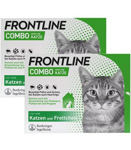 FRONTLINE COMBO® - der Kombischutz für Tier und Heim Ob Freigänger- oder Hauskatze: ein Parasitenbefall ist schnell in die eigenen vier Wände getragen und kann durch übertragbare Krankheiten für Samtpfoten sogar gefährlich werden. Mit FRONTLINE COMBO® schützen Sie Ihre Katze zuverlässig gegen Parasiten wie Zecken, Flöhe und Haarlinge. Zusätzlich zu einem Schutz auf dem Tier hemmt FRONTLINE COMBO® auch den Befall der direkten häuslichen Umgebung des Tieres durch Floheier, Flohlarven und Flohpuppen. EInfach im Nacken auf der Haut der Katze aufgetragen, verteilt sich die wasserfeste und geruchtslose Lösung mit dem natürlichen Talgfilm über die gesamte Körperoberfläche des Tieres und wirkt so effektiv gegen Parasiten auf dem Tier. Die Kombination aus zwei Wirkstoffen verhindert dabei gleichzeitig, dass sich Floheier, -larven und -puppen in der Umgebung entwickeln können. So begleitet FRONTLINE COMBO® Stubentiger und Wildkatzen auf all ihren Abenteuern wie ein unsichtbarer Schutzmantel. Vertrauen Sie auf die Nr. 1 gegen Zecken und Flöhe bei Hunden und Katzen* – mit bewiesener Wirksamkeit und sehr guter Verträglichkeit für unsere Vierbeiner. Die Anwendung von FRONTLINE COMBO® Entnehmen Sie eine Pipette aus der Verpackung. Halten Sie die Pipette aufrecht und knicken Sie die Pipettenspitze an der perforierten Stelle nach unten ab. Das Fell der Katze zwischen den Schulterblättern scheiteln und die Pipette direkt auf die Haut aufsetzen. Dann die Pipette entleeren. Von dieser Stelle aus verteilt sich der Wirkstoff innerhalb von 1 bis 2 Tagen mit dem natürlichen Talgfilm auf der gesamten Haut. Die Wirkweise von FRONTLINE COMBO® FRONTLINE COMBO® ist der Kombischutz für Tier und Heim. Nach dem Auftragen auf die Haut der Katze verteilt sich das Produkt mit dem natürlichen Talgfilm der Haut und wirkt so wie ein äußerer, unsichtbarer Schutzmantel gegen Zecken, Flöhe und Haarlinge bei Katzen und Frettchen. Für eine optimale Verteilung sollte das Tier innerhalb von 2 Tagen nach der Anwendung nicht gebadet werden. Danach ist FRONTLINE COMBO® - wie alle FRONTLINE®-Produkte - wasserfest. Die Parasiten nehmen den Wirkstoff bei Kontakt mit Fell und Haut auf und werden so innerhalb weniger Tage unschädlich gemacht. Gleichzeitig wird die Entwicklung von neuen Floheiern, -larven und -puppen auf dem Tier und in der direkten Umgebung des Tieres gehemmt. DIE HÄUFIGSTEN FRAGEN RUND UM FRONTLINE COMBO® Wie schützt FRONTLINE COMBO® mein Tier und mein Zuhause? FRONTLINE COMBO® besitzt eine Wirkstoffkombination, die bei regelmäßiger Anwendung sowohl das Tier gegen verschiedene Parasitenarten schützt, als auch den Befall der direkten häuslichen Umgebung des Tieres mit Floheiern, -larven und -puppen hemmt. Während einer der Wirkstoffe gegen Zecken, Flöhe und Haarlinge auf dem Tier wirkt und vor einem erneuten Befall schützt, verhindert der zweite enthaltene Wirkstoff, dass sich Floheier, - larven und -puppen in der direkten Umgebung des Tieres... ...