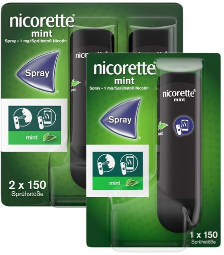Mit nicorette® endlich aufhören zu rauchen Mit nicorette® endlich aufhören zu rauchen nicorette® mint Spray ist ein Nikotinspray zur Raucherentwöhnung, das Dich sowohl beim sofortigen Rauchstopp als auch bei Reduktion des Zigarettenkonsums mit dem Endziel Rauchfreiheit unterstützen kann. In nur 30 Sekunden lindert es mit 2 Sprühstößen Rauchverlangen und andere Entzugserscheinungen, die beim Aufhören mit dem Rauchen auftreten können, wie z. B. erhöhte Reizbarkeit und gesteigerter Appetit. Damit wirkt es schneller als andere Nikotinersatzprodukte von nicorette® und kann so insbesondere in kritischen Momenten helfen, nicht zu der Zigarette zu greifen. So geht's: Nikotinersatztherapie mit nicorette® Spray 1-2 Sprühstöße des nicorette® Sprays ersetzen eine Zigarette. Das Nikotin gelangt durch das Sprühen des Sprays in den Mund schnell über die Mundschleimhaut in die Blutbahn. Dadurch steigt der Nikotinspiegel im Blut und das Rauchverlangen wird gelindert. Bei der Raucherentwöhnung mit sofortigem Rauchstopp wird empfohlen, nicorette® Spray über 12 Wochen anzuwenden und über diesen Zeitraum die Sprühstöße und damit die Nikotinzufuhr zu reduzieren. Jetzt neu: Verbindung mit der Tracking-App nicorette® Nichtraucher“ Dank integriertem NFC-Chip kann mit der App jede Nutzung des nicorette® Sprays ganz einfach getrackt werden. Dazu das nicorette® Spray nach der Nutzung an die App halten und so einen Überblick über die Nutzung des nicorette® Sprays erhalten. Erstelle Dir Deinen Rauchstopp-Plan: durch das Setzen deiner eigenen Ziele kannst Du deinen Fortschritt zu jeder Zeit tracken. Der integrierte Rechner zeigt Dir zudem, auf wie viele Zigaretten Du bisher verzichtet hast und wie viel Geld Du dadurch sparen konntest. Außerdem können zahlreiche Tipps zusätzlich helfen, motiviert zu bleiben. Anwendung Entriegeln der Kindersicherung Nutze Deinen Daumen, um die Taste nach unten zu schieben, bis sie sich leicht nach innen drücken lässt. Übe dabei nicht zu viel Druck aus. Schiebe die Taste nach oben, während Du sie gedrückt hältst, bis der Sprühkopf herausgeschoben ist. Das Spray ist entriegelt. Richtig sprühen mit dem Spray Halte das Spray mit der Öffnung ganz nah an Deinen geöffneten Mund. Sprühe in die Mundhöhle oder in die seitliche Wangentasche, ohne dabei zu schlucken, einzuatmen, die Lippen zu benetzen, zu essen oder zu trinken. Drücke den Sprühkopf einmal fest von oben herunter. Wiederhole diesen Vorgang ein zweites Mal, wenn Dein Rauchverlangen nicht innerhalb weniger Minuten abnimmt. Verriegele das Spray danach wieder Dosierung 1-2 Sprühstöße ersetzen eine Zigarette. 1 Sprühstoß enthält 1 mg Nikotin. Wende maximal folgende Anzahl an Sprühstößen an: 2 Sprühstöße nacheinander 4 Sprühstöße pro Stunde 64 Sprühstöße pro Tag Zur Unterstützung bei der Raucherentwöhnung beim Versuch das Rauchen sofort aufzugeben oder zur Verringerung des Zigarettenkonsums (Rauchreduktion), um auf diesem Weg den Rauchausstieg zu erreichen. Zusammensetzung Wirkstoff: Nicotin... ...
