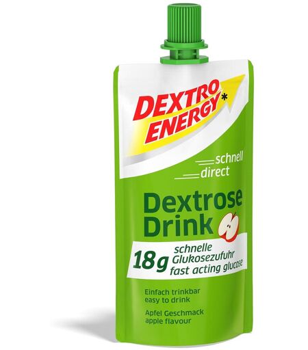 Bitte achten Sie auf eine abwechslungsreiche und ausgewogene Ernährung und gesunde Lebensweise.Detro Energy* Dextrose Drink Apfel – 24g KohlenhydrateDIE flüssige Alternative zu Dextrose Täfelchen Trinkfertig liefert der Dextrose Drink schnell verfügbare Kohlenhydrate. Er enthält mit 50 ml Inhalt und 18 g Glukose insgesamt 24g Kohlenhydrate. Das entspricht in etwa vier Dextro Energy* Würfel Täfelchen und damit 2 BE. Aufgrund der besonders flüssigen Konsistenz ist der Dextrose Drink sehr gut trinkbar und punktet zusätzlich mit seinem fruchtigen Geschmack. Trinkfertig liefert schnell verfügbare Kohlenhydrate Ein Beutel enthält 24g Kohlenhydrate bei 18g Glukose, das entspricht ca. 2 BE Flüssige Konsistenz - kein Gel – damit gut trinkbar Wasserdichte Packung, robust und wiederverschließbar Mit fruchtigem Geschmack Einfache Dosierung durch Füllstandmarkierung*enthält Kohlenhydrate Zutaten: Wasser, Dextrose, Invertzuckersirup, Säuerungsmittel (Citronensäure), Aroma, Farbstoff (E 150c). NährwerteEinheitWertBrennwert kJkJ/100g684Brennwert kcalkcal/100g161Fettg/100g0,0- Gesättigte Fettsäureng/100g0,0 Kohlenhydrateg/100g39,9- Davon Zuckerg/100g39,8Eiweißg/100g0,0 Salz g/100g 0,00 Verzehrempfehlung: Bei Bedarf ein Beutel am Tag.Hinweis: Die täglich empfohlene Verzehrmenge darf nicht überschritten werden. Lagerungshinweis:Außerhalb der Reichweite von Kindern aufbewahren. Kühl, trocken und lichtgeschützt aufbewahren.Nettofüllmenge: 10x50 mlHerstellerdaten:Dextro EnergyGmbH & Co. KGOtto Hahn Str. 440670 Meerbusch ...