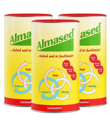 Bitte achten Sie Bitte achten Sie auf eine abwechslungsreiche und ausgewogene Ernährung und gesunde Lebensweise Almased Lactosefrei wurde entwickelt, um gezielt den Stoffwechsel zu unterstützen und ein gesundes Gewichtsmanagement langfristig zu fördern. Als ausgewogene Mahlzeit im hektischen Büro-Alltag oder als proteinreicher Energielieferant nach dem Training ist Almased der ideale Begleiter für jede Lebenslage. Die spezielle Zusammensetzung liefert dem Körper täglich wertvolle Nährstoffe und aktiviert wichtige Stoffwechselprozesse. Mit Almased Lactosefrei erleben Sie die gewohnt hohe Almased-Qualität – ganz ohne Laktose. 23 essentielle Vitamine, Mineralstoffe versorgen den Körper mit allem, was er für einen aktiven Lebensstil benötigt. Mit einem niedrigen glykämischen Index von 27 auch für Diabetiker*innen geeignet Die Kombination von Soja und laktosefreiem Magermilch-Joghurt bietet ein vollwertiges Aminosäureprofil zur idealen Unterstützung des Muskelaufbaus und –erhalts Die positive Wirkung ist durch über 30 unabhängige Studien an renommierten Instituten bestätigt Laktosegehalt < 1 g/100 g: Auch bei Laktoseintoleranz optimal einsetzbar, ohne Kompromisse bei Geschmack oder Wirksamkeit Traditionsreiche Rezeptur Seit über 30 Jahren begleitet Almased Menschen auf ihrem Weg zu mehr Wohlbefinden und einer gesunden Gewichtsregulation. Die bewährte Kombination aus Soja, laktosefreiem Magermilch-Joghurt und enzymaktivem Bienenhonig fördert gezielt den Stoffwechsel, unterstützt die Fettverbrennung und versorgt den Körper mit allen wichtigen Nährstoffen – auch über die Abnahmephase hinaus. Die Wirkung von Almased wird regelmäßig durch unabhängige Forschung untersucht und bestätigt. Ausgewählte Rohstoffe schonend verarbeitet Das pflanzliche Sojaprotein stammt aus kontrolliertem, gentechnikfreiem Anbau und sorgt für eine langanhaltende Sättigung. Ergänzt wird es durch laktosefreien Magermilch-Joghurt, der das Aminosäureprofil optimal abrundet und für eine besonders hohe biologische Wertigkeit des Mehrkomponenten-Proteins von Almased sorgt. Der flüssig verarbeitete Bienenhonig wird nicht erhitzt und behält seine aktiven Enzyme – so wird ein natürlicher Fermentationsprozess ausgelöst, der die Verdaulichkeit verbessert und die Bildung bioaktive Peptide ermöglicht. Diese haben positive Effekte auf den Stoffwechsel und die Zellregeneration. Natürliche Zutaten Almased Lactosefrei enthält ausschließlich natürliche Inhaltsstoffe und verzichtet bewusst auf künstliche Aromen, Süßungsmittel, Konservierungsstoffe und Maltodextrin. Der niedrige glykämische Index von 27 macht das Produkt besonders geeignet für Diabetiker*innen und alle, die ihren Blutzuckerspiegel stabil halten und Heißhungerattacken vermeiden wollen. Für mehr Energie, Wohlbefinden und eine gesunde Lebensweise, auch dann, wenn Sie laktoseintolerant sind oder lieber auf Laktose verzichten wollen. (Hinweis: Da es sich bei Almased Lactosefrei um ein Naturprodukt handelt, können leichte Schwankungen in... ...