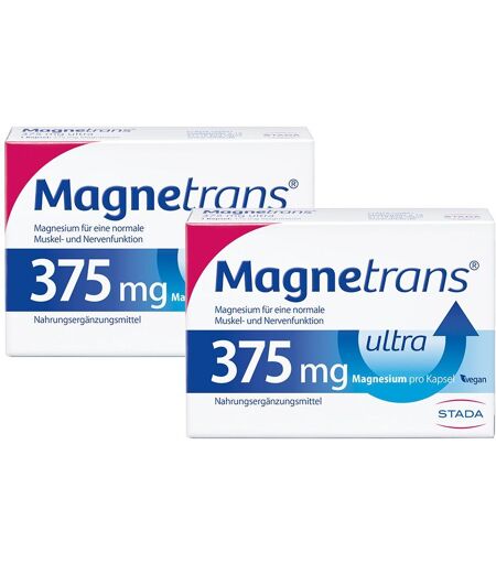 Nahrungsergänzungsmittel sind kein Ersatz für eine ausgewogene und abwechslungsreiche Ernährung und eine gesunde Lebensweise. ULTRASTARKE VERSORGUNG BEI ERHÖHTEM MAGNESIUMBEDARFMagnetrans® 375 mg ultra kann zu einer zusätzlichen Versorgung mit Magnesium beitragen. Magnetrans® ultra 375 mg Kapseln können Ihnen helfen, mit nur einer Kapsel täglich 100 % des täglichen Magnesiumbedarfs zu decken und können einen Beitrag dazu zu leisten, die körpereigenen Magnesiumdepots aufzufüllen.GUT ZU WISSEN: Nur eine Kapsel täglich deckt 100 % des täglichen Magnesiumbedarfs* des Körpers nach Lebensmittelinformationsverordnung ab, der zu einer normalen Muskel- und Nervenfunktion beiträgt Magnesium wird für über 300 Körperfunktionen benötigt - aber der Körper kann es selbst nicht herstellen: Magnesiumpräparate von Magnetrans® können helfen, zu einem ausgeglichenen Magnesiumhaushalt beizutragen laktosefrei, glutenfreiANWENDUNGSEMPFEHLUNG: Erwachsene und Jugendliche ab 12 Jahren: 1 x täglich eine der Magnesiumkapseln mit genügend Flüssigkeit (z.B. ein Glas Wasser) schlucken.HÄUFIGE FRAGEN & ANTWORTEN:Welchen Einfluss hat Magnesium auf Ihr Wohlbefinden?Magnesium trägt zur normalen Funktion des Nervensystems und zur normalen psychischen Funktion bei. Außerdem trägt Magnesium zur Verringerung von Müdigkeit und Ermüdung bei. Zudem unterstützt Magnesium die normale Muskelfunktion, den normalen Energiestoffwechsel und spielt für das Elektrolytgleichgewicht eine Rolle. Weiterhin trägt Magnesium zum Erhalt normaler Knochen bei.Tipps zur Einnahme: MagnesiumkapselnMagnetrans® ultra 375 mg ist so dosiert, dass Sie mit einer Kapsel die ausreichende Magnesiumzufuhr erhalten. Sie können täglich eine der Magnesiumkapseln mit genügend Flüssigkeit schlucken *nach LebensmittelverordnungZutaten:Eine Kapsel Magnetrans® 375 mg ultra enthält 375 mg Magnesium. Weitere Zutaten: Magnesiumoxid; Hypromellose; Füllstoff: Cellulose; Feuchthaltemittel: Polyethylenglycol; Farbstoffe: und Eisenoxide. (E172), Eisen(III)-oxid (E172), (E171).Nährwerte: Zusammensetzung pro Kapsel % NRV Magnesium 375 mg 100 % Verzehrsempfehlung:Erwachsene und Jugendliche ab 12 Jahren: 1 x täglich eine der Magnesiumkapseln mit genügend Flüssigkeit (z.B. ein Glas Wasser) schlucken.Hinweis:Die angegebene empfohlene Tagesmenge darf nicht überschritten werden.Aufbewahrung: Kühl (6-25 °C) und lichtgeschützt lagern. Außerhalb der Reichweite von kleinen Kindern aufbewahren.Nettofüllmenge:2 x 100 KapselnHersteller:STADA Consumer Health Deutschland GmbHStadastraße 2-18 61118 Bad Vilbel ...