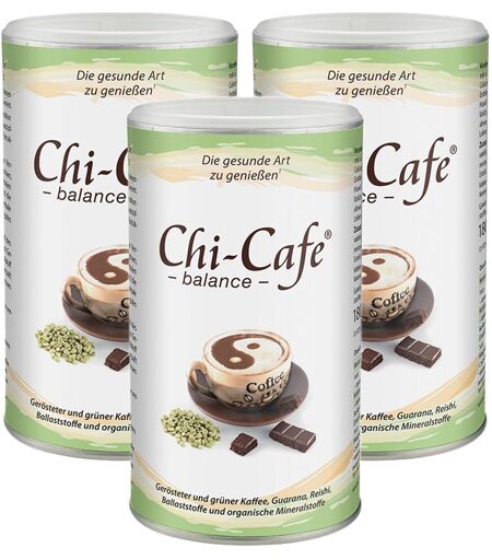 Nahrungsergänzungsmittel sind kein Ersatz für eine ausgewogene und abwechslungsreiche Ernährung und eine gesunde Lebensweise.Harmonisch, sanft, einzigartig – für echte GenießerGut für Darm & Verdauung, Energie, Stimmung & Nerven*Regt an, nicht auf** – Koffein aus Guarana & KaffeeOrganisches Calcium & Magnesium für Knochen & Zähne*10 g Ballaststoffe aus Akazienfaser in 3 TassenPolyphenole aus grünem Kaffee, Granatapfel, Ginseng, Reishi-Pilz & KakaoVegan, ohne Zusatzstoffe, Zucker, Laktose, Fett & Gluten450 g Getränkepulver mit Kaffee, Ballaststoffen, Mineralstoffen und aromatisierenden Pflanzenauszügen (90 Tassen)Chi-Cafe balance – harmonischer Genuss, der Ihre Sinne belebt*Chi-Cafe balance setzt sich aus erlesenen Zutaten zusammen, die Ihre Lebensenergie wecken*. Seine Basis aus löslichen Ballaststoffen der Akazienfaser verleiht ihm eine angenehm cremige Textur, eine natürliche Süße und ein geschmeidiges Mundgefühl. Das Zusammenspiel von grünem und geröstetem Arabica- und Robusta-Kaffee sorgt für ein volles Kaffeearoma.Diese Grundkomposition wird durch wertvolle Pflanzenstoffe bereichert: feinherbe Extrakte aus Reishi-Pilz, Granatapfel, Ginseng und sanft anregendem Guarana**. Eine dezente Kakao-Note rundet das Geschmacksprofil perfekt ab.Tauchen Sie ein in ein Getränk, das Balance und Geschmack perfekt miteinander vereint.Die gesunde* Kaffee-Alternative – für ein gutes Bauchgefühl*Chi-Cafe balance liefert die wertvollen organischen Mineralstoffe Calcium und Magnesium. Drei Tassen Chi-Cafe balance decken den Tagesbedarf dieser beiden Mineralstoffe zu ca. 30 %. Eine Tasse hat den gleichen Basen-Wert (als PRAL-Wert) wie 100 g Brokkoli (PRAL: potenzielle Säurebelastung der Nieren).*Die Nährstoffe in Chi-Cafe balance tragen zu folgenden normalen Körperfunktionen bei:Energiestoffwechsel (Calcium, Magnesium)Erhaltung von Zähnen und Knochen (Calcium, Magnesium)Minderung von Müdigkeit (Magnesium)Psychische Funktion (Stimmung) (Magnesium)Muskelfunktion und Nervensystem (Magnesium)Verdauungsenzyme im Darm (Calcium)Akazienfaser-BallaststoffeLaut NVS2-Studie erreichen 75 % der deutschen Frauen nicht die empfohlene tägliche Ballaststoffaufnahme von 30 g. Drei Tassen Chi-Cafe balance liefern bereits ca. 10 g Ballaststoffe, wovon ein wesentlicher Teil aus der Akazienfaser stammt. Akazienfaser enthält mind. 90 % lösliche Ballaststoffe, insbesondere in Form der wertvollen Arabinogalaktane.Akazienfaser, auch als Akaziengummi bekannt, wird aus dem Pflanzensaft der Akazie gewonnen. Die Bäume gedeihen in freier Wildbahn und liefern ein bernsteinfarbenes Harz, das per Hand gesammelt und ohne den Einsatz chemischer Mittel veredelt wird. Akazienbäume in der Sahelzone sind ein wesentlicher Schutz gegen die Ausbreitung der Sahara und eine wichtige Einkommensquelle für die lokale Bevölkerung.Sanfte Anregung mit Koffein aus Guarana**Aus normalem Kaffee regt Koffein direkt an. Aus der tropischen Guarana-Frucht wird Koffein langsam freigesetzt. Dies... ...