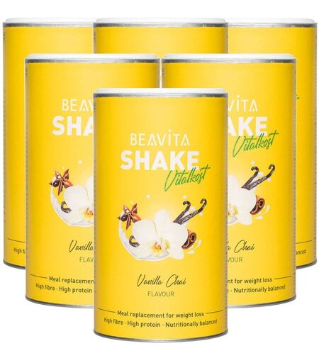 Bitte achten Sie auf eine abwechslungsreiche und ausgewogene Ernährung und gesunde LebensweiseBEAVITA 2 Wochen Diät-Paket Vanilla ChaiDieses Set besteht aus: 3 x BEAVITA Vitalkost Plus, Vanilla ChaiBEAVITA Diät-Shake, Cookies-CreamSie möchten sich wieder in Ihrem Körper wohlfühlen und Ihr Leben genießen? Dann ist der BEAVITA Shake genau richtig: Nur 205 kcal pro Shake 23 Vitamine & Mineralien Schnell & einfach zubereitetMit dem BEAVITA Shake können Sie Ihr Wunschgewicht erreichen. Der Abnehm-Shake ist wunderbar cremig, dank etwas Honig angenehm süß und schmeckt lecker nach würziger Vanille. Durch das einfache Zubereiten versorgt er sie innerhalb kürzester Zeit mit 13 Vitaminen und zehn Mineralstoffen. Diese haben unterschiedliche Funktionen im Körper: Zum Beispiel trägt Eisen zum normalen Energiestoffwechsel bei und Zink unterstützt den Fettsäurestoff- und Kohlenhydratstoffwechsel. Gleichzeitig liefert ein Shake 24 Gramm Protein, welches den Erhalt und Aufbau von Muskulatur unterstützt. So funktioniert BEAVITA Sie möchten Gewicht verlieren? Ersetzen Sie dazu zwei Mahlzeiten am Tag durch einen BEAVITA Shake. Im Rahmen einer kalorienarmen Ernährung trägt der Shake zu einer Gewichtsreduktion bei. Sie möchten Ihr Gewicht halten? Ersetzen Sie eine Mahlzeit am Tag durch einen Shake. So wird im Rahmen einer kalorienarmen Ernährung der Erhalt des Gewichts vereinfacht.BEAVITA – der Mahlzeitenersatz für jeden Alltag Der Shake lässt sich schnell zubereiten und ist auch ideal für unterwegs oder im Büro. So können Sie den Mahlzeitenersatz einfach in den Alltag integrieren. Für eine Portion vier gehäufte Esslöffel (57 Gramm) in 300 Milliliter Wasser einrühren. Bereiten Sie alle weiteren Mahlzeiten kalorienarm und ausgewogen zu. Parallel ist eine Flüssigkeitszufuhr von zwei bis drei Litern Wasser (oder andere Getränke ohne Kalorien) ein Muss. Entdecken Sie auch die acht anderen Sorten von BEAVITA, wie beispielsweise Cookies-Cream, Schokolade oder Mango Lassi – für mehr Abwechslung. Zutaten: Sojaeiweiss-Isolat (47,0 %), Polydextrose, Maltodextrin, Honig (9,0 %), Sojaöl, Maisstärke, Kaliumcitrat, Milcheiweiss, Aroma, Calciumsalze der Orthophosphorsäure, Johannisbrotkernmehl, Gewürze (0,6 %), Flohsamenschalen, Magnesiumhydroxid, Emulgator: Sojalecithin, Süssungsmittel: Sucralose, Speisesalz, L-Ascorbinsäure, Trennmittel: Siliciumdioxid, Eisensulfat, Zinkoxid, Nicotinamid, D-alpha-Tocopherylacetat, Mangansulfat, Calcium-D-pantothenat, Antioxidationsmittel: Alpha-Tocopherol, Riboflavin, Pyridoxinhydrochlorid, Thiaminmononitrat, Retinylacetat, Kupfergluconat, Pteroylmonoglutaminsäure, Natriumselenit, Natriumjodid, Phyllochinon, D-Biotin, Cholecalciferol, CyanocobalaminNährwerte: Durchschnittliche Nährwerte: pro 100 g: NRV pro Portion (57 g ) NRV Energie 1519 kJ / 360 kcal 866 kJ / 205 kcal Fett - davon gesättigte Fettsäuren 6,4 g 1,3 g 3,6 g 0,8 g Kohlenhydrate - davon Zucker 26,5 g 9,4 g 15,1 g 5,4 g Ballaststoffe 13... ...