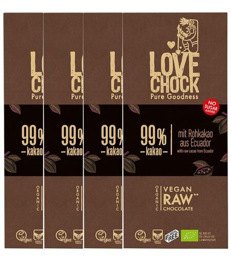 Lovechock Extreme Dark, 99 % Kakao, Tafel 4x70 g Schokolade