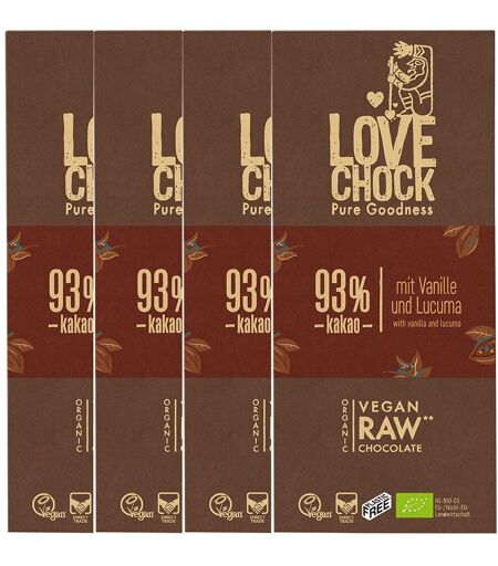 Lovechock Bio rohe Schokolade, 93 % Kakao, Tafel 4x70 g Schokolade