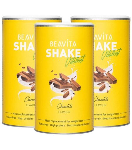 Bitte achten Sie auf eine abwechslungsreiche und ausgewogene Ernährung und eine gesunde Lebensweise.BEAVITA Diät-Shake, SchokoSie möchten sich wieder in Ihrem Körper wohlfühlen und Ihr Leben genießen? Dann ist der BEAVITA Shake genau richtig: Nur 206 kcal pro Shake 23 Vitamine & Mineralien Schnell & einfach zubereitetMit dem BEAVITA Shake können Sie Ihr Wunschgewicht erreichen. Der Abnehm-Shake ist wunderbar cremig, dank etwas Honig angenehm süß und schmeckt lecker nach Schoko. Durch das einfache Zubereiten versorgt er sie innerhalb kürzester Zeit mit 13 Vitaminen und zehn Mineralstoffen. Diese haben unterschiedliche Funktionen im Körper: Zum Beispiel trägt Eisen zum normalen Energiestoffwechsel bei und Zink unterstützt den Fettsäurestoff- und Kohlenhydratstoffwechsel. Gleichzeitig liefert ein Shake mehr als 24 Gramm Protein, welches den Erhalt und Aufbau von Muskulatur unterstützt. So funktioniert BEAVITA Sie möchten Gewicht verlieren? Ersetzen Sie dazu zwei Mahlzeiten am Tag durch einen BEAVITA Shake. Im Rahmen einer kalorienarmen Ernährung trägt der Shake zu einer Gewichtsreduktion bei. Sie möchten Ihr Gewicht halten? Ersetzen Sie eine Mahlzeit am Tag durch einen Shake. So wird im Rahmen einer kalorienarmen Ernährung der Erhalt des Gewichts vereinfacht.BEAVITA – der Mahlzeitenersatz für jeden Alltag Der Shake lässt sich schnell zubereiten und ist auch ideal für unterwegs oder im Büro. So können Sie den Mahlzeitenersatz einfach in den Alltag integrieren. Für eine Portion vier gehäufte Esslöffel (55 Gramm) in 200 Milliliter Wasser einrühren. Bereiten Sie alle weiteren Mahlzeiten kalorienarm und ausgewogen zu. Außerdem ist eine Flüssigkeitszufuhr von zwei bis drei Litern Wasser (oder andere Getränke ohne Kalorien) ein Muss.Entdecken Sie auch die acht anderen Sorten von BEAVITA, wie beispielsweise Caffè Latte, Vanilla Chai oder Mango Lassi – für mehr Abwechslung.Zutaten: Sojaeiweiß-Isolat (48%), Honig (15%), Magermilch-Joghurtpulver (10%), Maltodextrin, Sojaöl, Kakaopulver (4%), Kaliumphosphat, Glukosesirup, Mais-Dextrin, natürliches Aroma, Calciumphosphat, Speisesalz, Milcheiweiß, Süßungsmittel (Stevioglycoside), Magnesiumoxid, Eisendiphosphat, Vitamin C (Ascorbinsäure), Vitamin E (D-alpha-Tocopherylacetat), Nicotinamid, Zinkoxid, Trennmittel (Siliciumdioxid), Calcium-D-pantothenat, Mangansulfat, Kupfercarbonat, Vitamin B6 (Pyridoxinhydrochlorid), Vitamin B1 (Thiaminmononitrat), Vitamin B2 (Riboflavin), Vitamin A (Retinylacetat), Natriumselenit, Folsäure (Pteroylglutaminsäure), D-Biotin, Vitamin D3 (Cholecalciferol), Vitamin B12 (Cyanocobalamin), Antioxidationsmittel (DL-alpha-Tocopherol) Nährwerte: Durchschnittliche Nährwerte pro 100 g pro Portion (55 g ) % NRV* Energie 1608 kJ / 384,32 kcal 884,4 kJ / 221,28 kcal Fett - davon gesättigte Fettsäuren 8,2 g 1,8 g 4,51 g 0,99 g Kohlenhydrate - davon Zucker 29,9 g 19,3 g 16,45 g 10,62 g Ballaststoffe 3 g 1,65 g Eiweiß 45,4 g 24,97 g Salz 2 g 1,1 g ... ...
