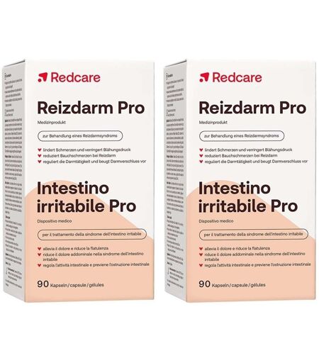 Set enthält2x Redcare Reizdarm Pro 90 StRedcare Reizdarm Pro Redcare Reizdarm Pro ist ein Medizinprodukt zur unterstützenden Behandlung des Reizdarmsyndroms (RDS). Es wurde speziell entwickelt, um häufige damit einhergehende Beschwerden wie Bauchschmerzen, Blähungen, Völlegefühl und Druckgefühl im Bauchbereich effektiv zu lindern. Dank seiner synergistischen Wirkformel hilft es dabei, die Darmfunktion zu normalisieren und schmerzhaften Symptomen entgegenzuwirken – insbesondere bei RDS-Patient*innen, die unter Durchfall leiden. Die Wirkung von Redcare Reizdarm Pro beruht auf zwei bewährten Inhaltsstoffen: natürlich vorkommendem Tonmineral (Magnesiumaluminiumsilikat) und Simeticon. Das Tonmineral besitzt die Fähigkeit, Toxine, Bakterien und Viren im Verdauungstrakt zu binden. So wird verhindert, dass sich diese schädlichen Stoffe an der Darmschleimhaut ablagern. Das Simeticon sorgt dafür, dass sich die Gasblasen im Magen und im Darm leichter sammeln und erleichtert damit die Gaspassage. Bis heute lässt sich das RDS nicht heilen. Redcare Reizdarm Pro lindert jedoch die damit einhergehenden Symptome. Die Einnahme von Redcare Reizdarm Pro ist unkompliziert: Über einen Zeitraum von vier Wochen werden dreimal täglich zwei Kapseln mit einem großen Glas Wasser (ca. 200 Milliliter) unzerkaut eingenommen – idealerweise mit oder nach einer Mahlzeit. Die empfohlene Anwendung gilt für Erwachsene und Kinder ab 12 Jahren. Die Packung enthält 90 Kapseln und reicht für einen Monat. Pflichtangaben Inhaltsstoffe: Natürlicher Mineralton, Hydroxypropylmethylcellulose, Simeticon 50 %, Mikrokristalline Cellulose, Magnesiumstearat, Sonnenblumenkernöl (Helianthus annuus) Dosierung und Anwendung: Redcare Reizdarm Pro ist zur oralen Einnahme vorgesehen. Empfohlene Dosis für Erwachsene und Kinder im Alter von mindestens 12 Jahren: Vier Wochen lang dreimal täglich zwei Kapseln einnehmen. Das Produkt sollte mit oder nach einer Mahlzeit eingenommen werden. Die Kapsel sollte mit einem großen Glas Wasser (200 ml) unzerkaut heruntergeschluckt werden. Redcare Reizdarm Pro nicht länger als 30 Tage innerhalb einer Behandlungsperiode anwenden. Nach einer viertägigen Pause kann die Behandlung erneut aufgenommen werden. Hinweise: Redcare Reizdarm Pro bei Unverträglichkeit oder Allergie gegenüber den Kapselbestandteilen nicht verwenden; Die Kapseln unzerkaut schlucken. Die Kapseln dürfen sich nicht im Mund auflösen; Darf nicht in die Hände von Kindern gelangen; Ungeeignet für Kinder im Alter von unter 12 Jahren. Redcare Reizdarm Pro sollte nicht gleichzeitig mit anderen Arzneimitteln eingenommen werden. Aufbewahrung: Bei 5-25°C an einem trockenen dunklen Ort in der Originalverpackung und außerhalb der Reichweite kleiner Kinder aufbewahren. ...