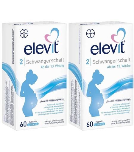 Nahrungsergänzungsmittel sind kein Ersatz für eine ausgewogene und abwechslungsreiche Ernährung und eine gesunde Lebensweise.Elevit® 2 unterstützt während der Schwangerschaft mit Nährstoffen Die Entwicklung eines Babys im Mutterleib folgt einem festgelegten und ausgeklügelten Ablauf. Elevit® 2 ist ein umfangreicher Nährstoffkomplex aus Mineralstoffen sowie Vitaminen, der diese Entwicklung ab der 13. Schwangerschaftswoche unterstützt – und trägt unter anderem mit der Omega-3-Fettsäure DHA zu einer normalen Entwicklung von Augen und Gehirn des Fötus bei.* Elevit® 2 ist frei von Laktose, Gluten sowie Schweinegelatine und lässt sich mit nur einer Kapsel am Tag einfach anwenden.Nährstoffe ab der 13. Schwangerschaftswoche: Elevit® 2 Nach den ersten 12 Wochen der Schwangerschaft ist der Embryo bereits zu einer Größe von etwa einer Streichholzschachtel herangereift. Möglich macht dies unter anderem die Nährstoffversorgung durch die Mutter über die Nabelschnur. Durch diesen wichtigen Kontakt erreichen das Baby viele Nährstoffe, die für die Bildung von Organen und Knochen und deren Wachstum benötigt werden. Eine gesunde, ausgewogene Ernährung der Mutter in dieser Phase ist deshalb besonders wichtig. Da Schwangere für ihr Baby quasi mitessen, ist eine ausgewogene Ernährung sehr wichtig – jedoch gelingt sie nicht immer und es kann schwierig sein, den erhöhten Bedarf an Vitaminen, Mineralstoffen, Spurenelementen und Omega-3-Fettsäuren abzudecken. Elevit® 2 bietet eine umfassende Versorgung mit Nährstoffen: Das speziell zusammengesetzte Nahrungsergänzungsmittel für die Zeit ab der 13. Schwangerschaftswoche liefert Folsäure, Omega-3-Fettsäuren, Eisen und weitere wichtige Nährstoffe. Elevit® 2 hilft Schwangeren dabei, ihren erhöhten Nährstoffbedarf zu decken, um damit auch das Baby bedarfsgerecht zu versorgen; es liefert Mikronährstoffe und Vitamine, die ab der 13. Schwangerschaftswoche besonders relevant sind. unterstützt eine umfangreiche Versorgung der schwangeren Frau und des Babys. liefert spezielle Nährstoffe (zum Beispiel die Omega-3-Fettsäure DHA) für die normale Entwicklung von Augen und Gehirn des Fötus*, die ab der 13. Schwangerschaftswoche verstärkt stattfindet. enthält zudem 400 Mikrogramm Folsäure (davon 200 Mikrogramm Metafolin® und 200 Mikrogramm Folsäure), Zink, Selen, Eisen und 15 weitere, speziell kombinierte Vitamine, Spurenelemente und Mineralstoffe.Erwerben können Sie das Nahrungsergänzungsmittel rezeptfrei in der 30er und 60er-Packung. Was Sie bei der Anwendung beachten müssen? Nehmen Sie einfach täglich eine Kapsel Elevit® 2 mit reichlich Wasser ein. Diese umfassende und auf den Mehrbedarf abgestimmte Vitamin- und Mineralstoffversorgung unterstützt Sie in der Schwangerschaft. Elevit® 2 knüpft dabei nahtlos an die Versorgung durch Elevit® 1 an und bietet einen an die Entwicklung des Babys angepassten Nährstoffmix. Somit übernimmt es den zweiten Baustein im Elevit® 3-Phasen-Programm, welches Frauen vom Kinderwunsch bis zum Ende der... ...