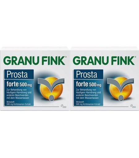 Pflanzliches Arzneimittel zur Behandlung von Prostata-Blasenbeschwerden. GRANU FINK® Prosta forte 500 mg wirkt stark, hilft natürlich dank hochdosiertem Uromedic® Kürbissamen mit prostata-aktiven Delta-7-Sterolen. Eine Besserung des häufigen Harndrangs und des schwachen Harnstrahls ist schon nach 4 Wochen spürbar. Dabei schont GRANU FINK® Prosta forte 500 mg die Sexualfunktion. Das Arzneimittel verbindet klinisch bewiesene Wirksamkeit *1 mit sehr guter Verträglichkeit. Reduziert häufigen Harndrang Stärkt den Harnstrahl Schont die Sexualfunktion Wie ist GRANU FINK® Prosta forte 500 mg einzunehmen? Nehmen Sie dieses Arzneimittel immer genau wie in dieser Packungsbeilage beschrieben bzw. genau nach der mit Ihrem Arzt oder Apotheker getroffenen Absprache ein. Fragen Sie bei Ihrem Arzt oder Apotheker nach, wenn Sie sich nicht sicher sind. Erwachsene Die empfohlene Dosis beträgt 2-mal täglich 1 Hartkapsel GRANU FINK® Prosta forte 500 mg. Bitte nehmen Sie die Hartkapsel vor einer Mahlzeit mit etwas Flüssigkeit ein. Die Dauer der Einnahme ist prinzipiell nicht begrenzt. Eine regelmäßige und längerfristige Einnahme wird empfohlen. Kinder und Jugendliche Die Anwendung bei Kindern und Jugendlichen ist aufgrund des Anwendungsgebietes nicht vorgesehen. Was GRANU FINK® Prosta forte 500 mg enthält Der Wirkstoff ist: Dickextrakt aus Kürbissamen. Eine Hartkapsel enthält 500 mg Dickextrakt aus Kürbissamen (15–25 : 1), Auszugsmittel Ethanol 92 % (m/m). Die sonstigen Bestandteile sind: Siliciumdioxid, methyliert, Gelatine, Natriumdodecylsulfat, gereinigtes Wasser, Eisen(III)-oxid (E 172), Eisen(II, III)-oxid (E 172), Eisen(III)-hydroxid-oxid (E 172). Pflichttext: GRANU FINK® Prosta forte 500 mg Wirkstoff: Dickextrakt aus Kürbissamen Anwendungsgebiete: Pflanzliches Arzneimittel bei Beschwerden beim Wasserlassen infolge einer Vergrößerung der Prostata (Prostataadenom Stadium I bis II nach Alken bzw. Stadium II bis III nach Vahlensieck). Das Vorliegen einer schwerwiegenden Grunderkrankung als Ursache für die Beschwerden muss vor der Behandlung von einem Arzt ausgeschlossen worden sein. Dieses Arzneimittel wird angewendet bei erwachsenen Männern ab 18 Jahren. Zu Risiken und Nebenwirkungen lesen Sie die Packungsbeilage und fragen Sie Ihre Ärztin, Ihren Arzt oder in Ihrer Apotheke. ...