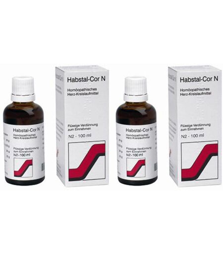 Homöopathisches Herz-KreislaufmittelMischung zum EinnehmenHabstal-Cor N ist ein Arzneimittel, dessen arzneilich wirksame Bestandteile nach ei- ner homöopathischen Verfahrenstechnik hergestellt sind. Die homöopathische Be- handlung von Patienten mit Herz-Kreislauferkrankungen bezweckt eine ausgleichende Regulation des gestörten Wechselspiels zwischen Herz und Gefäßen. Durch Entlas- tung des Herzmuskels und Stabilisierung des Kreislaufs bessert sich das Befinden und der Organismus kann wieder flexibler auf die täglichen Anforderungen reagieren. Die ausgwogene Kombination der homöopathischen Wirkstoffe in Habstal-Cor N er- möglicht ein Anwendungsspektrum, das von leichteren, kreislaufbedingten Unpässlich- keiten bis zu organischen Herzerkrankungen reicht.Anwendungsgebiete: Funktionelle und organische Herzleiden. Dazu gehören entsprechend den homöopa- thischen Arzneimittelbildern: Herz- und Kreislaufstörungen wie Herzschwäche, Alters- herz, Herzrhythmusstörungen, Angina pectoris und Störungen des Blutdruckes; akute Herzentzündung.Zusammensetzung:10 g enthalten: Arzneilich wirksame Bestandteile nach Art und Menge:Crataegus (Weißdorn) Ø 2,5 gDigitalis purpurea (Roter Fingerhut) Dil. D 2 0,025 gSpigelia anthelmia (Wurmkraut) Dil. D 4 2,5 gStrophanthus gratus (Strophanthus) Dil. D 4 2,5 gSonstige Bestandteile: Ethanol, Gereinigtes Wasser..Vorsichtsmaßnahmen für die Anwendung und Warnhinweise:Enthält 47 Vol.-% Alkohol. Die Anwendung des Arzneimittels bei Herzbeschwerden sollte nicht ohne ärztlichen Rat erfolgen und ersetzt nicht andere vom Arzt diesbezüglich verordnete Arzneimittel. Bei Schmerzen in der Herzgegend, die in Arme, den Oberbauch oder in die Halsgegend ausstrahlen können, bei Atemnot und bei Wasseransammlung in den Beinen, sowie bei unklaren Beschwerden ist eine ärztliche Abklärung zwingend erforderlich. Da keine ausreichend dokumentierten Erfahrungen vorliegen, sollte Habstal-Cor N in Schwangerschaft und Stillzeit nur nach Rücksprache mit dem Arzt angewendet werden. Zur Anwendung dieses Arzneimittels bei Kindern liegen keine ausreichend dokumentierten Erfahrungen vor. Es soll deshalb bei Kindern unter 12 Jahren nicht angewendet werden.Dosierungsanleitung, Art und Dauer der Anwendung:Die Dosierung erfolgt individuell. Zur Orientierung können folgende Angaben herangezogen werden: Bei akuten Zuständen 10-20 Tropfen alle halbe bis ganze Stunde, bei chronischen Verlaufsformen 20 Tropfen 3 x täglich. Flasche vor Gebrauch schütteln und dann Habstal-Cor N mit Flüssigkeit verdünnt (z.B. 1/2 Glas Wasser) vor den Mahlzeiten einnehmen. Auch homöopathische Arzneimittel sollten ohne ärztlichen Rat nicht über längere Zeit eingenommen werden.Hinweise und Angaben zur Haltbarkeit:Mindesthaltbarkeit 5 Jahre. ...