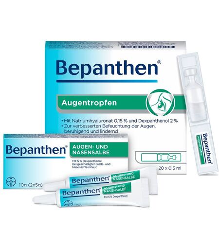 Bei leichten Schädigungen von Binde-, Horn- oder Nasenschleimhaut: Bepanthen® Augen- und Nasensalbe Unterstützen Sie mit der Bepanthen® Augen- und Nasensalbe die Heilung von trockener, rissiger Nasenschleimhaut sowie leichten Verletzungen am Auge (Binde- und Hornhaut) – und sorgen Sie damit für eine nachhaltige Regeneration. Dank des Wirkstoffes Dexpanthenol wird die Neubildung von Zellen angeregt und die natürliche Heilung gefördert. Die Bepanthen® Augen- und Nasensalbe ist gut verträglich und frei von Farb-, Duft- und Konservierungsstoffen. Bepanthen® Augen- und Nasensalbe für eine nachhaltige Regeneration Im Sommer ist es die Allergie, im Winter der Schnupfen – läuft die Nase, greifen wir vermehrt zum Taschentuch oder bei verstopfter Nase zu abschwellenden Nasensprays. Das hat allerdings zur Folge, dass die Nasenschleimhaut nach und nach austrocknet und gereizt reagiert. Sie fühlt sich trocken an, brennt oder juckt und bildet gelegentlich Krusten. Doch nicht nur das Innenleben der Nase kann bei Allergie oder Schnupfen leiden. Ständiges, kräftiges Naseputzen schadet beispielsweise den Nasenflügeln: Sie reagieren empfindlich, röten sich und können schmerzen. Für alle, die an einer wunden Nase oder einer trockenen, rissigen Nasenschleimhaut leiden: Die Bepanthen® Augen- und Nasensalbe unterstützt die Heilung, befeuchtet, beruhigt und pflegt – die Nase kann sich nachhaltig regenerieren. Im Auge entfaltet die Bepanthen® Augen- und Nasensalbe ihre heilungsfördernde Wirkung bei leichten Verletzungen der Bindehaut und Hornhaut. Die Bepanthen® Augen- und Nasensalbe weist folgende Vorteile auf: unterstützt den natürlichen Heilungsprozess sanft und wirksam bei leichten, oberflächlichen Schädigungen an Auge und Nase enthält keine Konservierungsstoffe Die Anwendung ist einfach und praktisch: Tragen Sie mithilfe der Kanüle einen Salbenstrang von etwa einem Zentimeter Länge am Bindehautsack des Auges (zwischen Augapfel und Unterlid) oder auf der Nasenschleimhaut auf – und das mehrmals täglich, sofern nicht anders verordnet. Da die Salbe steril und ohne Konservierungsstoffe hergestellt wird, darf sie am Auge nicht länger als eine Woche angewendet werden. An der Nase ist ein Gebrauch der Salbe bis zu vier Wochen möglich. Für Säuglinge und Kinder sollte weniger Salbe verwendet werden. Zu beachten ist außerdem: Tuben der Bepanthen® Augen- und Nasensalbe, die einmal in der Nase angewendet wurden, dürfen anschließend nicht mehr am Auge verwendet werden. Wenn Sie Kontaktlinsenträger sind und die Bepanthen® Salbe am Auge anwenden möchten, nehmen Sie die Kontaktlinsen vor der Verwendung bitte heraus. Denn einerseits kann der Kontakt mit der Salbe die Kontaktlinsen verschmieren, andererseits sind Unverträglichkeiten mit dem Linsenmaterial nicht ausgeschlossen. Weitere Hinweise zur Anwendung finden Sie im Beipackzettel. Einen Arzt sollten Sie aufsuchen, wenn sich Ihr Krankheitsbild verschlimmert oder nach vier Tagen am Auge beziehungsweise nach einer Woche an der Nase... ...