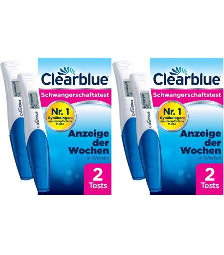 Clearblue Schwangerschaftstest mit Wochenbestimmung Der Clearblue Schwangerschaftstest mit Wochenbestimmung ist der bisher einzige Test, der bei der Bestimmung der Schwangerschaftswoche genauso zuverlässig ist wie eine Ultraschalluntersuchung. Sein intelligenter Dual-Sensor zeigt Ihnen auf dem digitalen Display nicht nur in Worten an, ob Sie schwanger sind oder nicht, sondern auch seit wann Sie schwanger sind – die Wochen seit der Empfängnis werden als 1-2, 2-3 oder 3+ angezeigt. Sie können den Test 5 Tage vor dem Ausbleiben der Periode (dies entspricht 4 Tage vor Fälligkeit der Periode) durchführen. Vorteile: Der erste und einzige digitale Test mit Anzeige der Wochen seit der Empfängnis – 1-2, 2-3 oder mehr als 3 Wochen Über 99% zuverlässig in der Erkennung einer Schwangerschaft ab dem Fälligkeitstag der Periode Zeigt eindeutige digitale Ergebnisse in Worten Schwanger“ oder Nicht Schwanger“ an Anwendung: Halten Sie das Teststäbchen mit der saugfähigen Spitze nach unten genau 5 Sekunden lang in Ihren Urinstrahl. Achten Sie darauf, dass nicht das ganze Teststäbchen des digitalen Schwangerschaftstests nass wird. Sie können auch eine Urinprobe in einem sauberen, trockenen Behälter auffangen. Halten Sie die Testspitze nach unten zeigend für genau 20 Sekunden in die Urinprobe. Wenn Sie möchten, können Sie die Kappe wieder aufsetzen und das Teststäbchen auf eine flache Oberfläche legen. Halten Sie die Testspitze nach unten oder legen Sie das Teststäbchen des digitalen Schwangerschaftstests auf eine flache Oberfläche, während Sie auf das Ergebnis warten. Wichtig! Halten Sie das Teststäbchen während der Durchführung niemals mit der saugfähigen Testspitze nach oben. Nach der Durchführung des Clearblue Schwangerschaftstests mit Wochenbestimmung zeigt das blinkende Symbol Warten“ an, dass der Test läuft. Wenn das Symbol Warten aufhört zu blinken, wird das Ergebnis angezeigt. Ablesen der Ergebnisse: Das Ergebnis wird nach 3 Minuten angezeigt. Es ist möglich, dass die Anzeige der Woche nach dem Ergebnis Schwanger“ angezeigt wird. Warten Sie so lange, bis das Symbol Warten“ nicht mehr blinkt, um das Ergebnis der Wochenbestimmung abzulesen. Das Ergebnis bleibt ca. 24 Stunden in der Anzeige ablesbar. ...