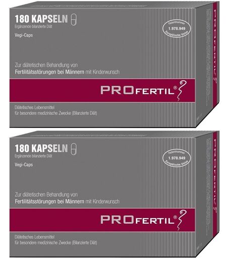 Bitte achten Sie auf eine abwechslungsreiche und ausgewogene Ernährung und gesunde Lebensweise. PROfertil® Kapseln Zutaten:L-Carnitin L-Tartrat, L-Arginin monohydrochlorid, dl-alpha tocopherolacetat, Überzugsmittel Hydroxypropylmethylcellulose, Zinkzitrat, Trennmittel (Siliciumdioxid, Magnesiumsalze der Speisefettsäuren, Talkum), L-Glutathion, Coenzym Q10, Maltodextrin, Farbstoffe (Titaniumdioxid, Eisendioxid), Pteroylglutaminsäure, Natriumselenat. Inhaltsstoffe pro Tag (2 Kapseln) pro 100 g (113 Kapseln) L-Carnitin 440 mg 24,9 g L-Arginin 250 mg 14,1 g Coenzym Q10 15 mg 0,8 g Vitamin E 120 mg 6,8 g Zink 40 mg 2,3 g Folsäure 800 mcg 45,3 mg Glutathion 80 mg 4,5 g Selen 60 mcg 3,4 mg Nährwerte pro Tag (2 Kapseln) pro 100 g (113 Kapseln) Brennwert 11,8 kJ/ 2,8 kcal 671,6 kJ/ 157,8 kcal Eiweiß 369,6 mg 20,9 g Kohlenhydrate 5,6 mg 0,3 g Fette 47,2 mg 2,7 g Broteinheiten 0,0002 0,026 Verzehrempfehlung: Täglich 2 Kapseln mit etwas Flüssigkeit zu oder nach einer Mahlzeit einnehmen. Nur unter ärztlicher Aufsicht verwenden. Die Mindesteinnahmedauer beträgt 3 Monate. Kein vollständiges Lebensmittel, ergänzende bilanzierte Diät. Laktose- und Glutenfrei. Das Kapselmaterial von PROfertil® ist aus rein pflanzlichen Stoffen (Cellulose) hergestellt. Frei von tierischen zusätzen. Hinweis: Die angegebene empfohlene Tagesmenge darf nicht überschritten werden. Aufbewahrung: Kühl (6-25 °C) und lichtgeschützt lagern. Außerhalb der Reichweite von Kindern aufbewahren. Nettofüllmenge:2 x 180 St Herstelledaten: Lenus Pharma GesmbH Seeböckgasse 59 1160 Wien Österreich ...