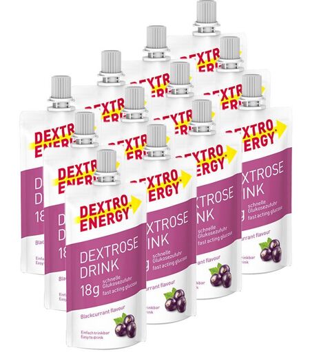 Nahrungsergänzungsmittel sind kein Ersatz für eine ausgewogene und abwechslungsreiche Ernährung und eine gesunde Lebensweise.DEXTRO ENERGY* Dextrose Drink schwarze JohannisbeereKennst du das Gefühl, wenn es höchste Zeit ist, dir schnelle Kohlenhydrate zuzuführen, die deine Zuckerspeicher wieder auffüllen? Dann probiere doch mal unseren Dextrose Drink für deinen Zuckerhaushalt während des Sports, bei Ausflügen oder in der Arbeit und beim Lernen!Muskeln und Gehirn benötigen eine Menge Energie, um ihre Arbeit zu tun. Die schnellen Kohlenhydrate in unserem Dextrose Drink gelangen sofort ins Blut (schneller als jede Banane!) und von dort zu Muskeln und Gehirn – hier werden sie umgewandelt und können unter anderem deine Glykogenspeicher wieder auffüllen oder direkt verwertet werden. Unser flüssiger Traubenzucker im praktischen Trinkbeutel ist dabei besonders effizient, weil du ihn einfach konsumieren kannst. So kann dein Dextro Traubenzucker in flüssiger Form überall und jederzeit deinen Zuckerspeicher auffüllen. Er enthält bei 50 ml Inhalt 18 g Glukose und insgesamt 24 g Kohlenhydrate – vergleichbar mit etwa vier Dextro Energy* Würfel-Täfelchen. Die flüssige Dextrose und die zusätzlichen Vitamine (Geschmack Orange) sind sofort da, wenn du sie brauchst!¹Dein Dextrose Drink: leckerer Geschmack und schnell verfügbare KohlenhydrateFlüssige Kohlenhydrate für deinen Körper, leckerer Geschmack für deinen Genuss: Unser Dextrose Drink schmeckt gut und bietet dir einen wichtigen Nährstoff für deinen Alltag. Stellt sich nur noch die Frage: Welche Geschmacksrichtung darf es sein?Feine Säure, leckere Frische: Probiere die Geschmacksrichtung Blackcurrant – und gönn dir den extra Kick mit schnellen Kohlenhydraten!Bei uns kannst du deinen flüssigen Traubenzucker kaufen. Entdecke jetzt den Dextrose Drink von Dextro Energy* – und gönne deinem Körper was Gutes!* enthält Kohlenhydrate ¹ Thiamin, Riboflavon, Niacin und Vitamin B6 tragen jeweils zu einem normalen Energiestoffwechsel beiEine abwechslungsreiche, ausgewogene Ernährung und eine gesunde Lebensweise sind wichtig. Zur schnellen Versorgung mit Glucose Trinkbar und wiederverschließbar Mit fruchtig frischem Cassisgeschmack Zutaten:Wasser, Dextrose (26%), Invertzuckersirup (23%), Säuerungsmittel (Citronensäure), natürliches Aroma.Nährwertangaben: 100 ml 1 Portion (50 ml) Brennwert 801kJ/188 kcal 401kJ/94kcal Fett 0 g 0 g davon gesättigte Fettsäuren 0 g 0 g Kohlenhydrate 47 g 24 g davon Zucker 47 g 24 g Eiweiß 0 g 0 g Salz 0 g 0 g * Prozent der Referenzmenge für die tägliche Zufuhr (= Nährstoffbezugswerte) ** Keine Nährstoffbezugswerte vorhanden Verzehrempfehlung: Je nach Bedarf 1 Beutel am Tag.Hinweis:Die angegebene empfohlene Tagesmenge darf nicht überschritten werden. Aufbewahrung:Kühl (6-25 °C) und lichtgeschützt lagern. Außerhalb der Reichweite von Kindern aufbewahren.Nettofüllmenge: 12 x 50 ml Herstellerdaten: Dextro Energy GmbH & Co. KG Hafenstr. 77 47809 Krefeld Germany ...