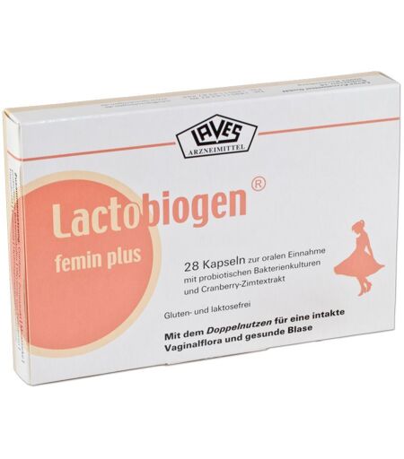 Nahrungsergänzungsmittel sind kein Ersatz für eine abwechslungsreiche und ausgewogene Ernährung und eine gesunde Lebensweise.Nahrungsergänzungsmittel mit probiotischen Bakterienkulturen und Cranberry-ZimtextraktLactobiogen® femin plus enthält eine besondere Kombination aus Cranberry-Zimt-Kapseln (ocker) mit einem probiotischen Bakterien-Stamm in hoher Konzentration (2,5 x 109 probiotische Bakterien) in der weißen Kapsel, die gezielt auf die besonderen Bedürfnisse der Frau abgestimmt ist.Zutaten:Weiße Kapseln: Maisstärke, Kapselhülle Verdickungsmittel Hydroxypropylmethyl- cellulose, probiotische Bakterienkultur (2,5 x 109 Lactobacillus helveticus CNCM I 3676), Trennmittel Mono- und Diglyceride von Fettsäuren. Kann Spuren von Soja enthalten.Ockerfarbene Kapseln:Zimt-Extrakt (300 mg), Cranberry-Extrakt (100 mg), Kapselhülle Verdickungsmittel Hydroxypropylmethylcellulose, Trennmittel Mono- und Diglyceride von Fettsäuren.Nährwerte: Durchschnittliche Nährwerte: pro Kapsel 1 weiße Kapsel pro 1 ockerfarbene Kapsel Energie 2,5 kcal / 10 kJ 2 kcal / 8 kJ Kohlenhydrate - davon Fett 0,55 g 0,02 g 0,4 g 0,014 g Eiweiß 0,012 g 0,014 g Verzehrempfehlung: Je eine Kapsel (ocker und weiß) 1 x tgl. mit etwas Flüssigkeit vor einer Mahlzeit einnehmen.Hinweise:Die angegebene Tagesverzehrmenge darf nicht überschritten werden.Aufbewahrung: Kühl und trocken und lichtgeschützt lagern und außerhalb der Reichweite von Kindern aufbwahrenNettofüllmenge:15,4 g Hersteller:Laves-Arzneimittel GmbHBarbarastr. 1430952 RonnenbergDeutschland ...