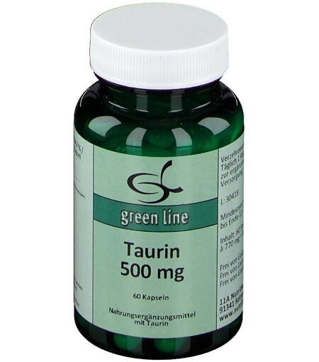 Nahrungsergänzungsmittel sind kein Ersatz für eine ausgewogene und abwechslungsreiche Ernährung und eine gesunde Lebensweise. green line Taurin 500 mgNahrungsergänzungsmittel mit TaurinZutaten: Taurin, Füllstoff mikrokristalline Cellulose, Hydroxypropylmethylcellulose.Frei von GlutenFrei von LactoseFrei von GelatineFrei von FarbstoffenOhne Zusatz von Konservierungsstoffen Zusammensetzung pro Kapsel Taurin 500 mg Verzehrempfehlung:1 Kapsel täglich.Hinweis:Die angegebene empfohlene Tagesmenge darf nicht überschritten werden. Aufbewahrung:Kühl (6-25 °C) und lichtgeschützt lagern. Außerhalb der Reichweite von kleinen Kindern aufbewahren.Nettofüllmenge:60 Kapseln = 42 gHersteller:11A Nutritheke GmbHyHauptstraße 3a91341 Röttenbach ...