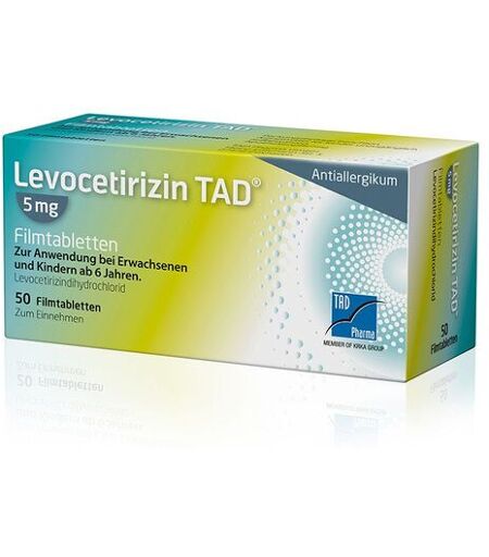 Levocetirizin TAD 5mg Filmtabletten zur Behandlung des allergischen Schnupfens und von juckenden Ausschlägen bei Nesselsucht Schnell wirksam: innerhalb von 30 Minuten Gut verträglich: für Kinder ab 6 Jahren geeignet Langanhaltend: nur eine Tablette am Tag Meine Allergie unter Kontrolle Menschen mit Allergien haben es nicht immer leicht. Eine allergische Reaktion kann durch eine Vielzahl verschiedener Allergene ausgelöst werden und ist in der Folge meist unangenehm. Ob Heuschnupfen, Tierhaarallergie oder Hausstauballergie: Levocetirizin TAD hilft bei der Behandlung von Allergie-Beschwerden wie allergischem Schnupfen und kann unangenehme Symptome wie juckende Augen, Juckreiz der Haut, Niesreiz oder eine laufende Nase bereits in der Entstehung verhindern. Das Antiallergikum eignet sich ebenfalls zur Behandlung von Juckreiz der Haut und Hautausschlag (Rötungen und Schwellungen) bei Urtikaria (Nesselsucht), Levocetirizin TAD gehört zu den Antihistaminika (antiallergische Medikamente) der zweiten Generation. Diese zeichnen sich im Vergleich zu den Antihistaminika der ersten Generation durch seltener auftretende Nebenwirkungen wie z. B. Müdigkeit aus. ANTIALLERGIKUM: Levocetirizin TAD ist ein antiallergisches Arzneimittel mit dem Wirkstoff Levocetirizindihydrochlorid SCHNELL WIRKENDES ANTIHISTAMINIKUM: Levocetirizin TAD wirkt innerhalb von 30 Minuten nach Einnahme GUT VERTRÄGLICH: Aufgrund der guten Verträglichkeit eignet sich das Antiallergikum bereits für Kinder ab 6 Jahren und Erwachsene BEI ALLERGIE UND NESSELSUCHT: Levocetirizin TAD eignet sich sowohl zur Behandlung von Heuschnupfen (allergischem Schnupfen) als auch zur Behandlung von Nesselsucht (Urtikaria) STARKE UND LANGANHALTENDE WIRKUNG: Nur eine Allergietablette ist pro Tag erforderlich Anwendung Die Filmtabletten sollten unzerkaut mit Wasser zu oder unabhängig von den Mahlzeiten eingenommen werden. Die Anwendungsdauer ist abhängig von Art, Dauer und Verlauf der Beschwerden und wird vom Arzt festgelegt. ...